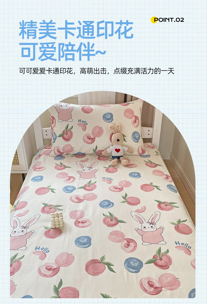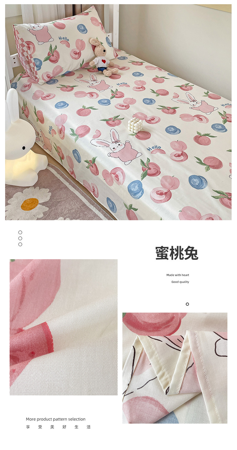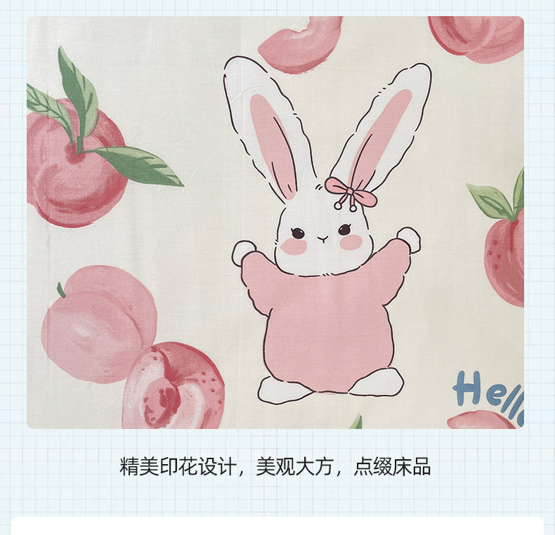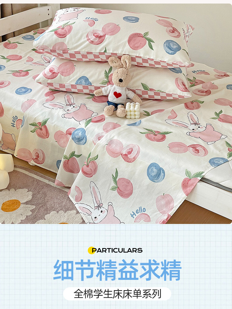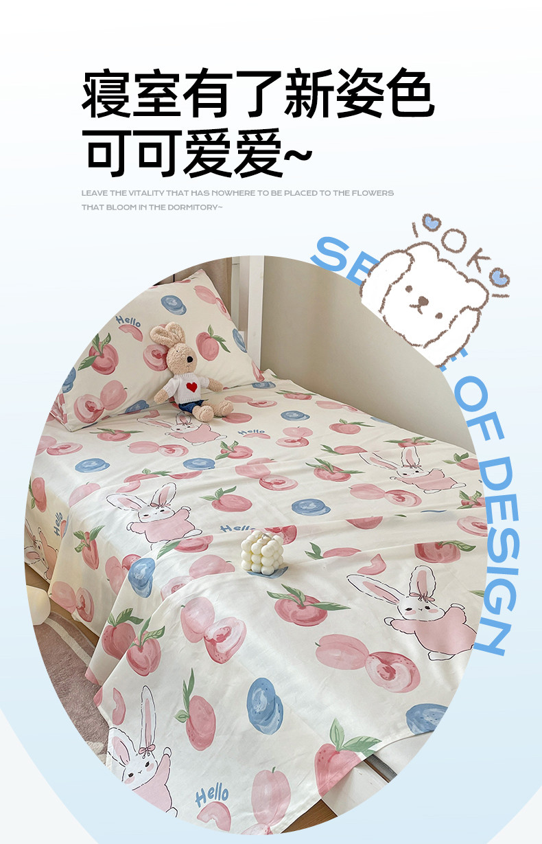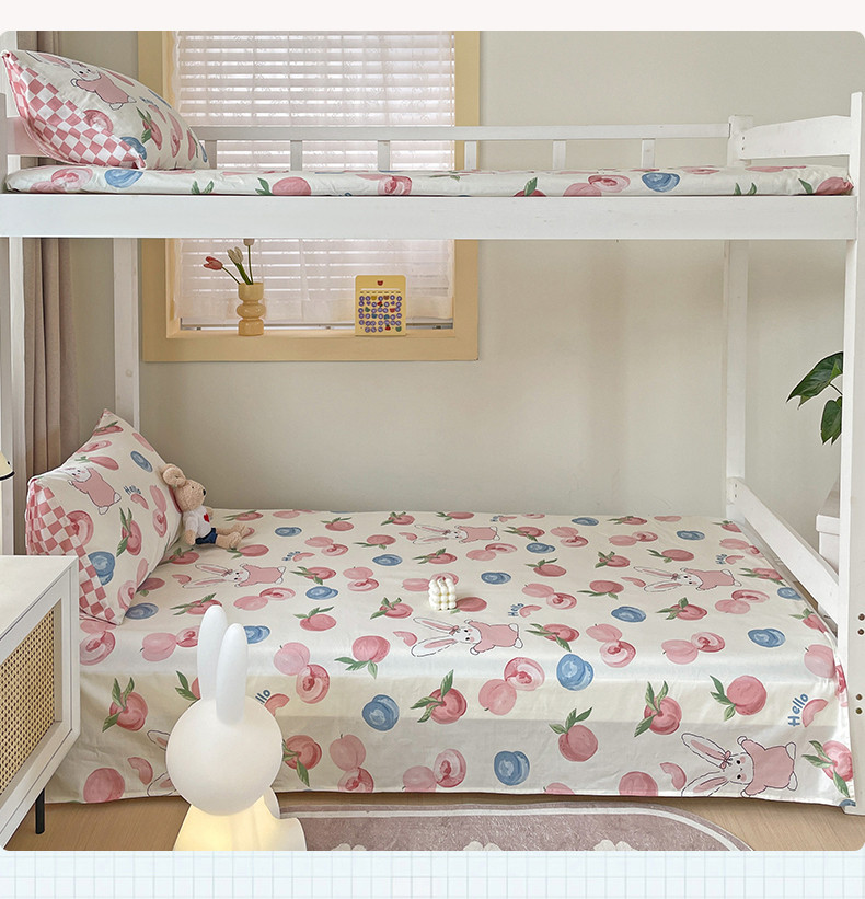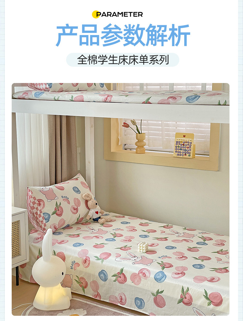 • 91家纺网 家纺一手货源 找家纺 名兮 2023新款全棉学生上下铺床单 蜜桃兔