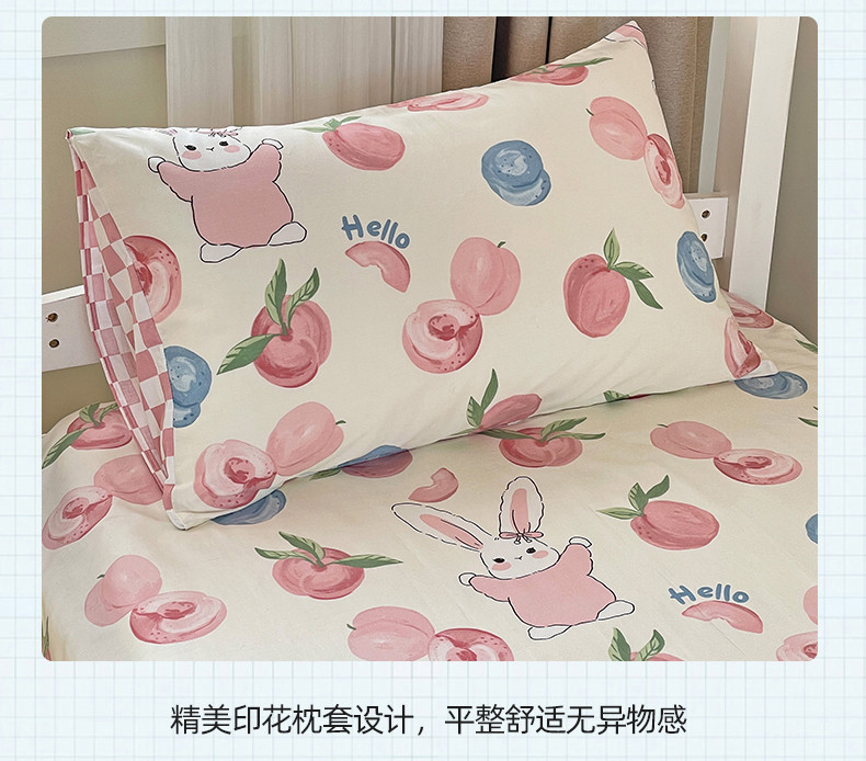 名兮 2023新款全棉学生上下铺床单 蜜桃兔