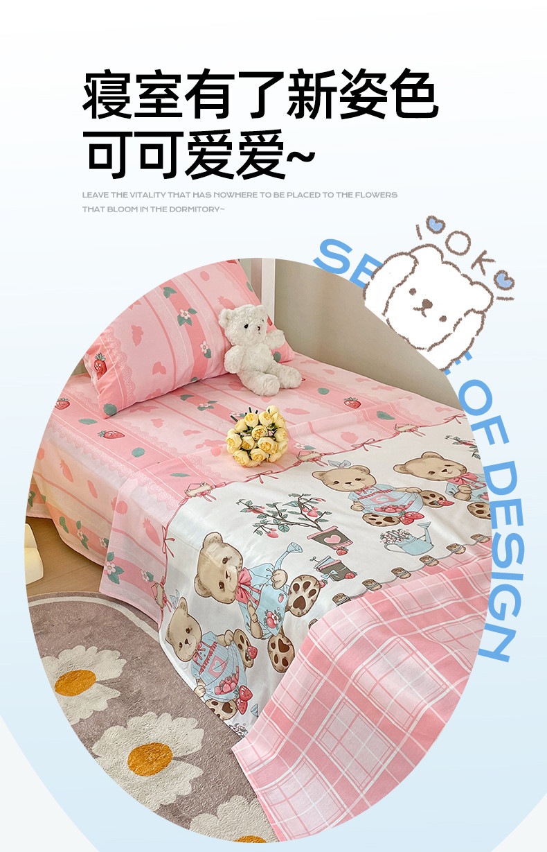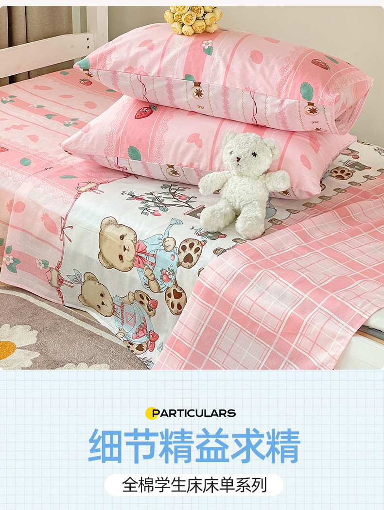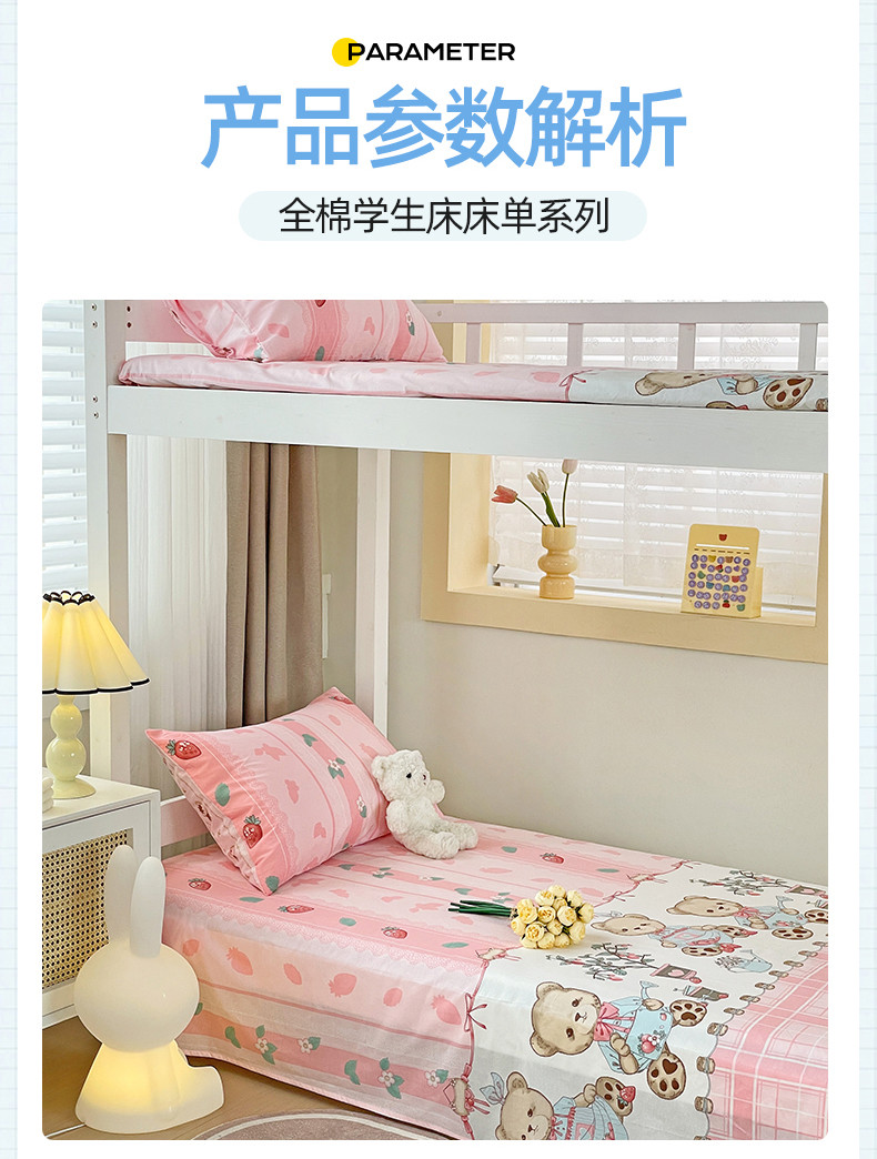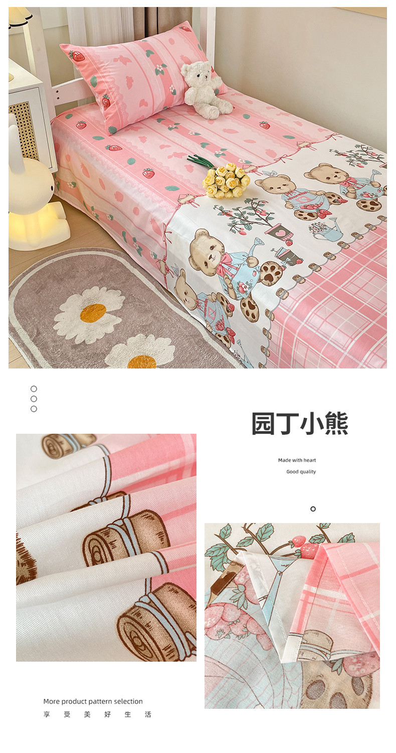 • 91家纺网 家纺一手货源 找家纺 名兮 2023新款全棉学生上下铺床单 园丁小熊