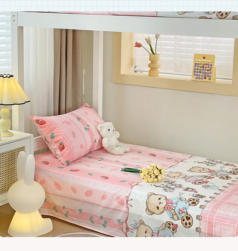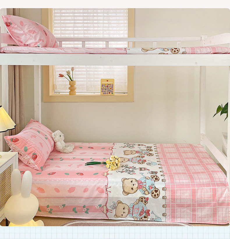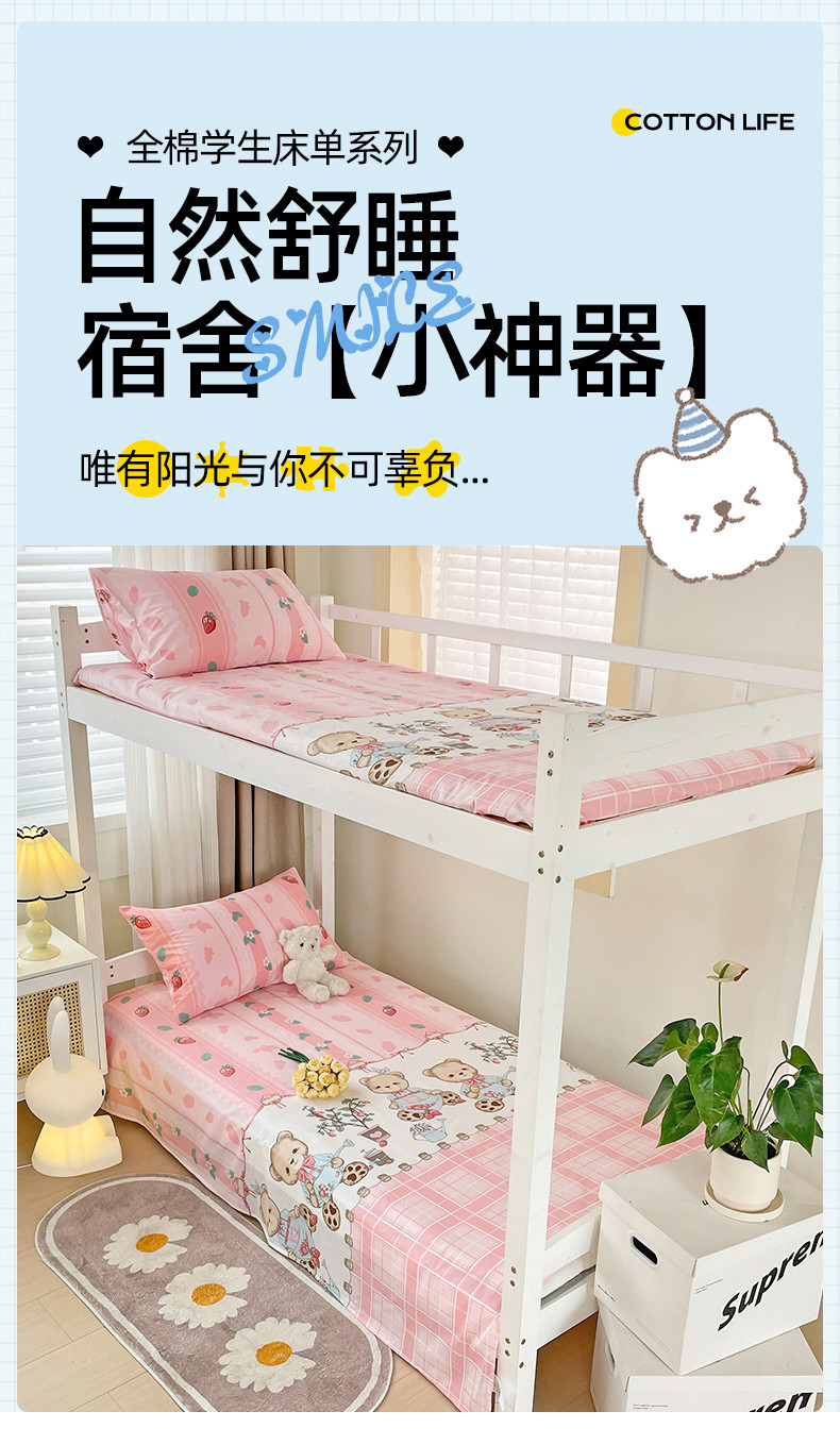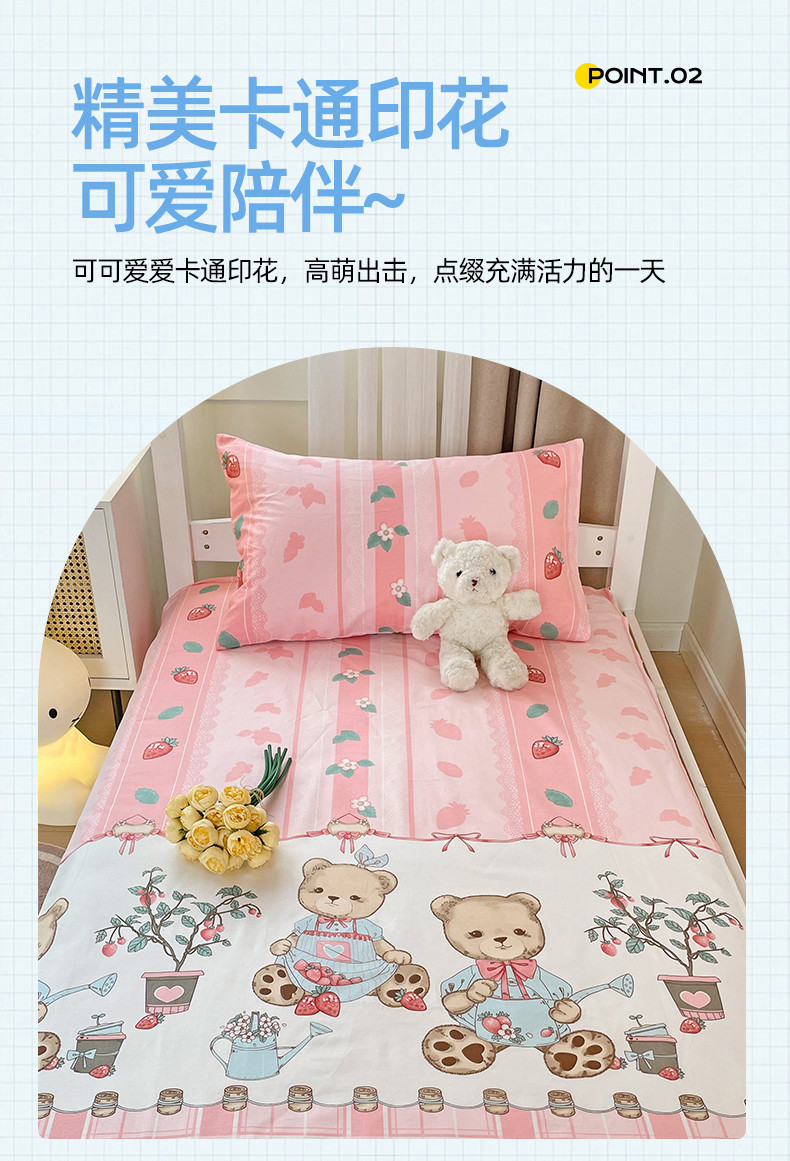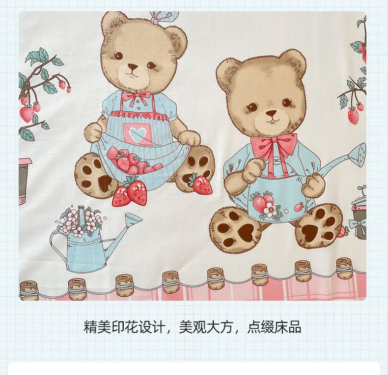• 91家纺网 家纺一手货源 找家纺 名兮 2023新款全棉学生上下铺床单 园丁小熊