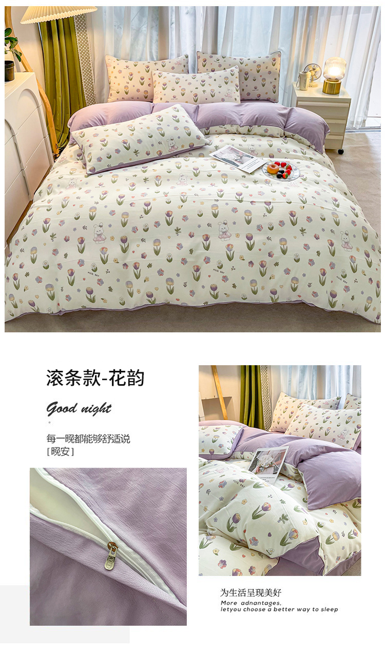 商品名称:仟网汇 2023新款皱皱布棉麻滚条四件套 滚条款-花韵