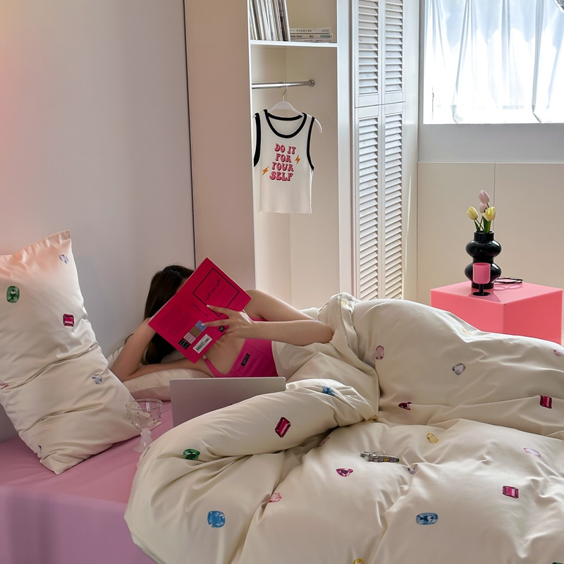 赫帛 2023新款50s缎纹数码印花四件套缤纷彩钻 缤纷彩钻-粉色床单