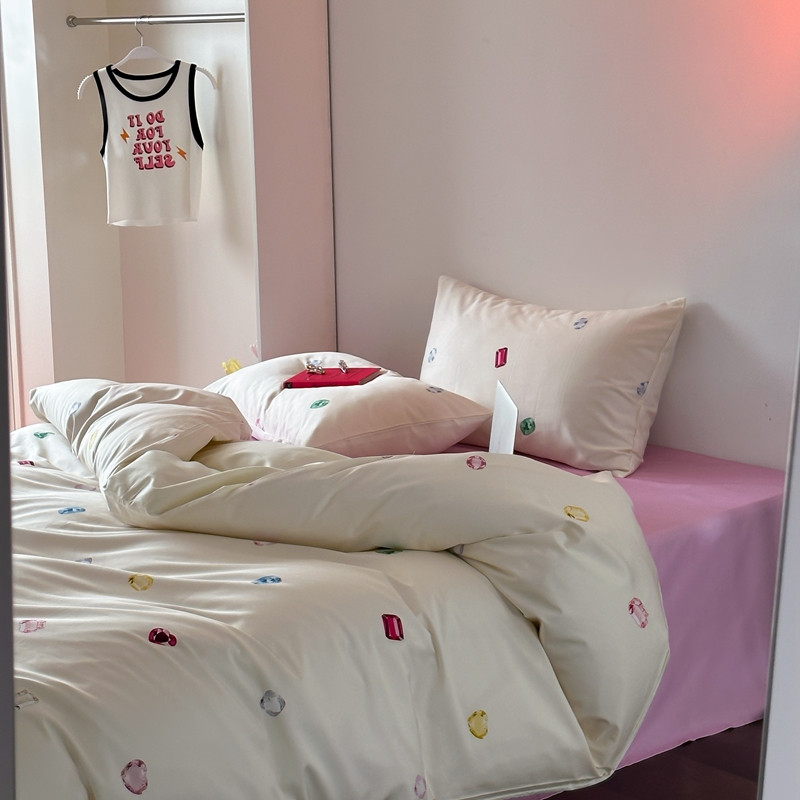 赫帛 2023新款轻奢50s缎纹数码印花长绒棉四件套 缤纷彩钻-米白,缤纷彩钻-米白