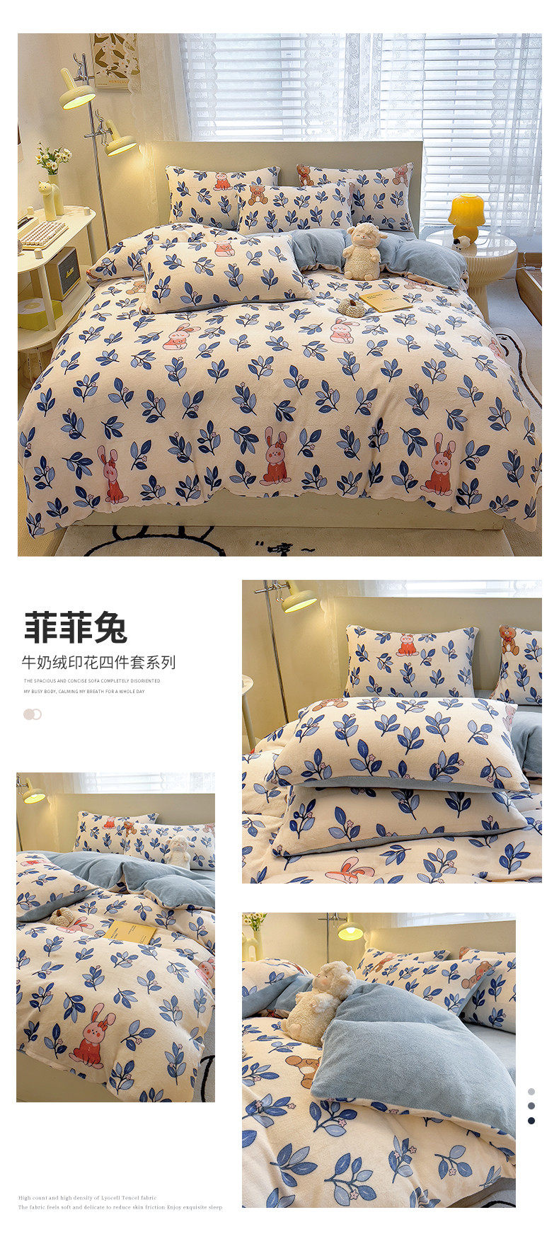 商品名称:芃成 2023新款双面牛奶绒印花四件套 菲菲兔