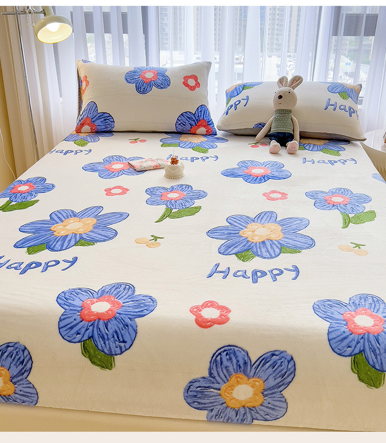 芃成家纺 2023新款牛奶绒印花床笠 花意流年