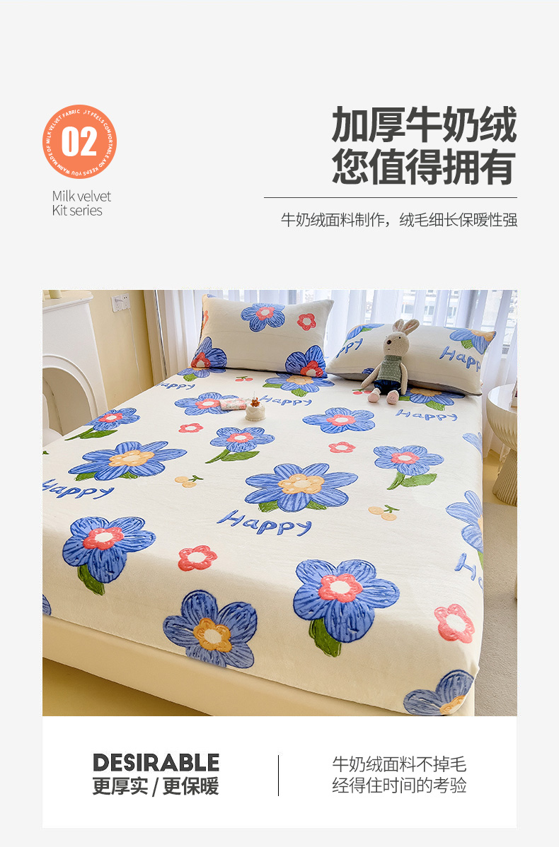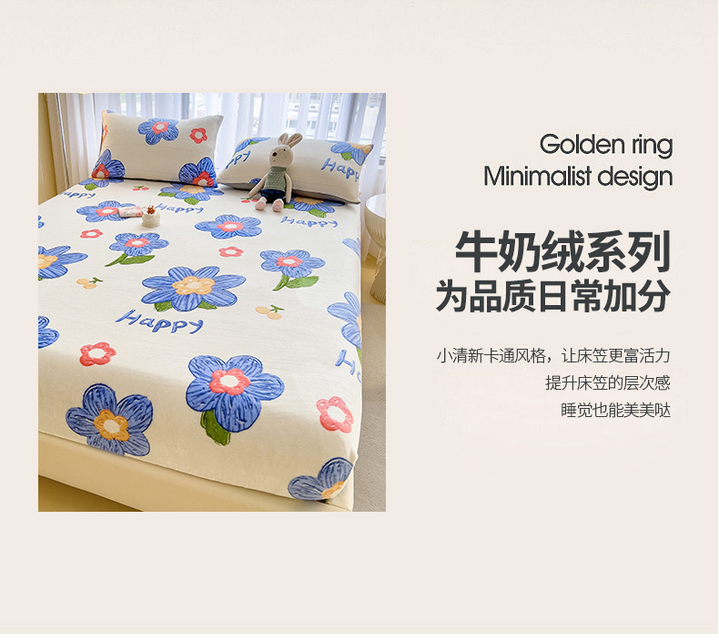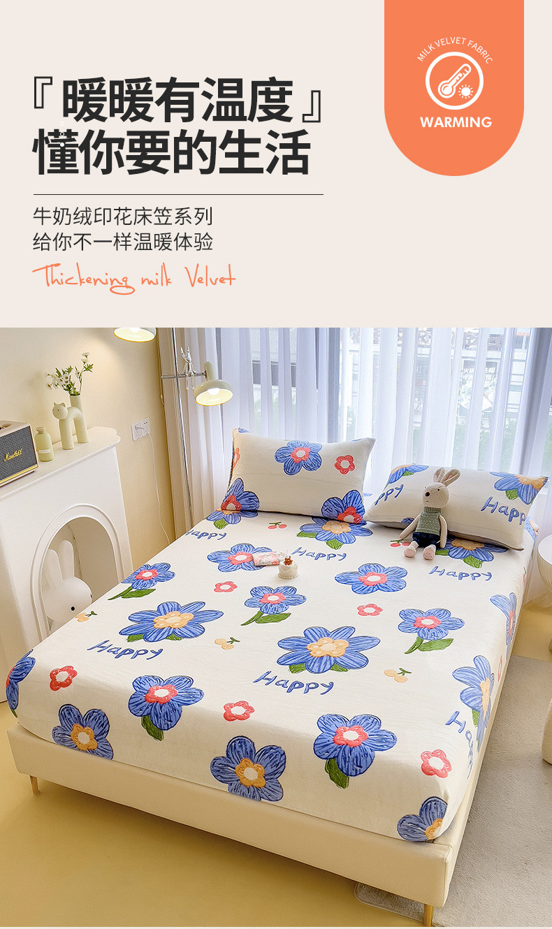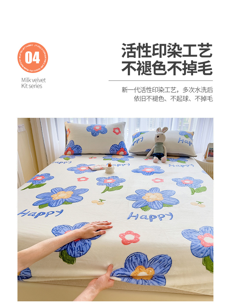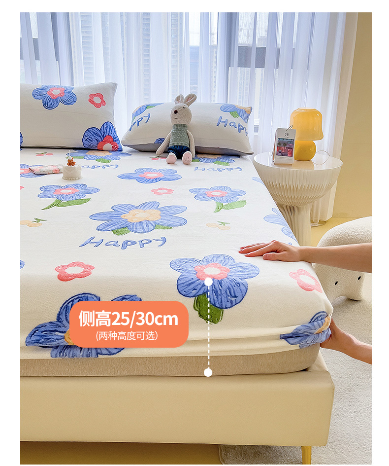 • 91家纺网 家纺一手货源 找家纺 芃成家纺 2023新款牛奶绒印花床笠 花意流年