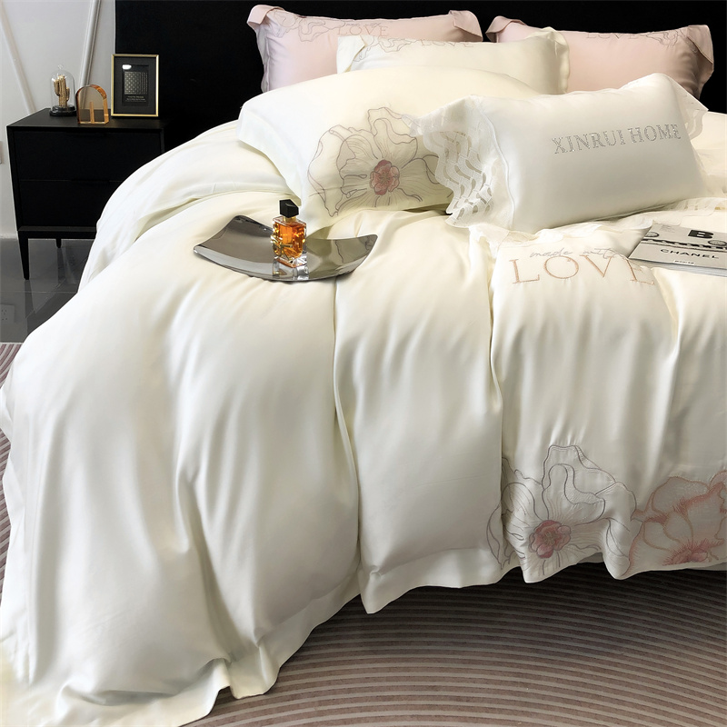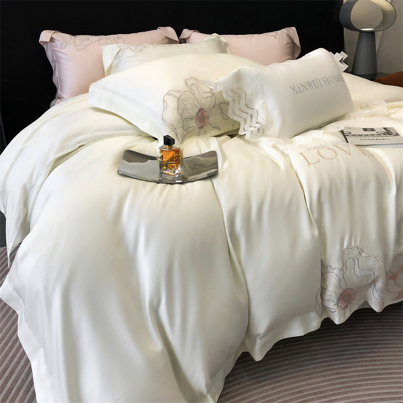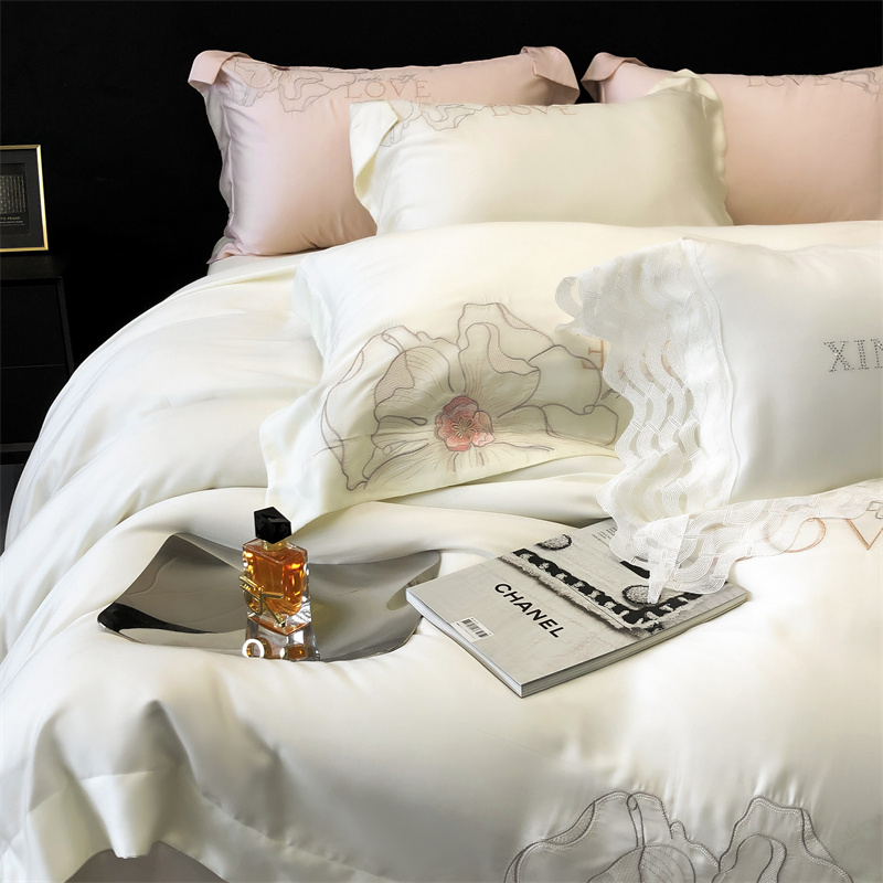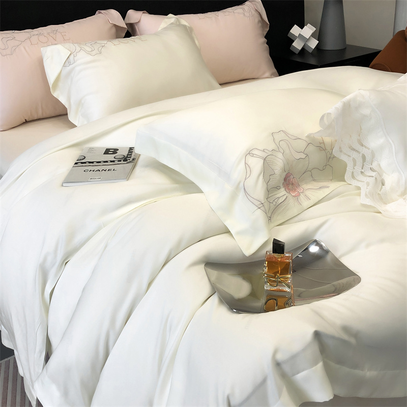 商品名称:馨蕊 2023秋冬新品100支高定轻奢风四件套-棉花恋 棉花恋-月光白