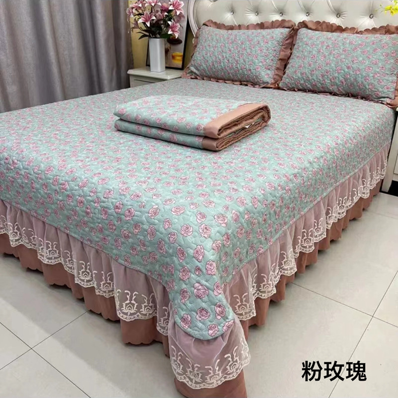 (总)梦柏家纺 2025新款韩式牛奶绒刺绣花边床盖四件套,风信紫,湖水蓝,浅草绿,蔷薇粉,樱花粉,月光白