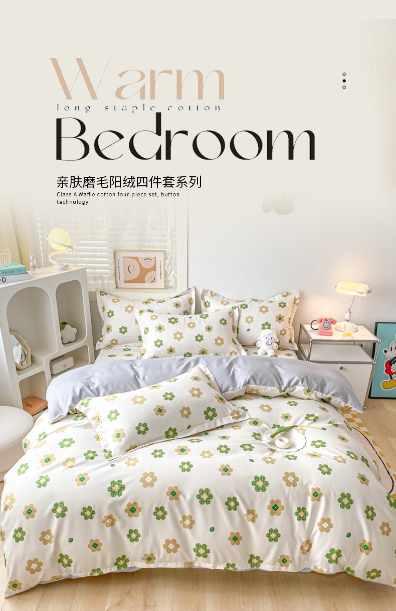 宇淳国际 2023新款加厚植物羊绒四件套 花香飘雪