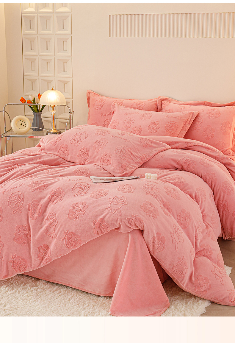 当前位置: 91家纺网 > 商品网购 > 床品套件 > 四件套 > 牛奶绒四件套 > 新品牛奶绒烂花230克四件套可定做 粉玫瑰