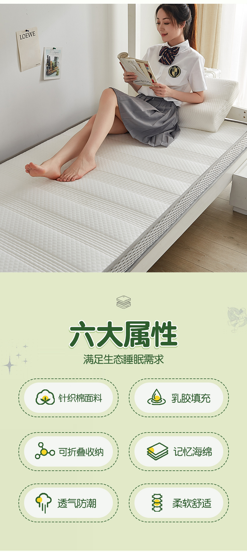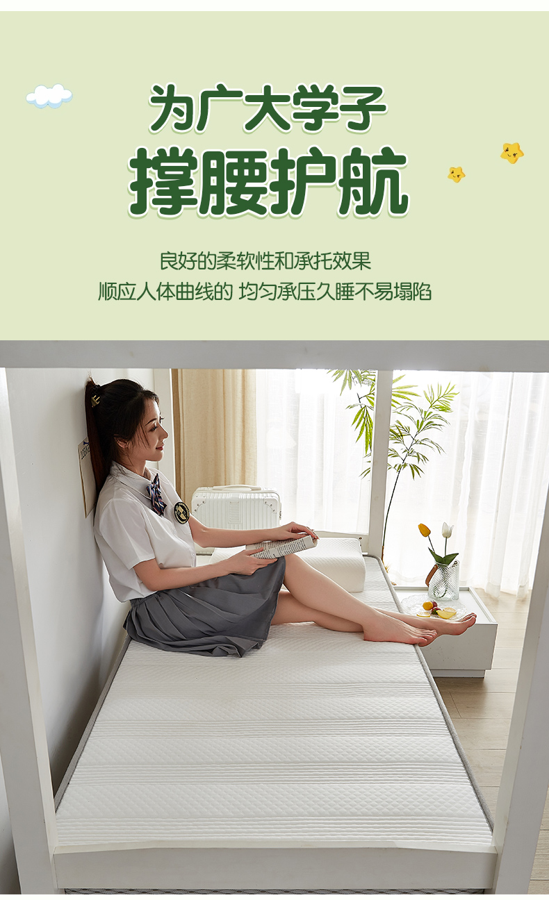 当前位置: 91家纺网 > 商品网购 > 床垫/床褥 > 普通床垫 > 锦丝钰床垫 开学季学生宿舍线条乳胶记忆海绵床垫 立体直线白色(6cm)