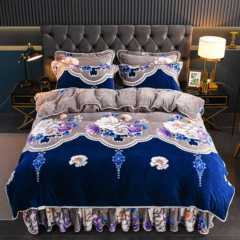 千嘻汇 2025新款7斤牛奶绒金貂法莱绒床裙款保暖绒四件套 花语,花语
