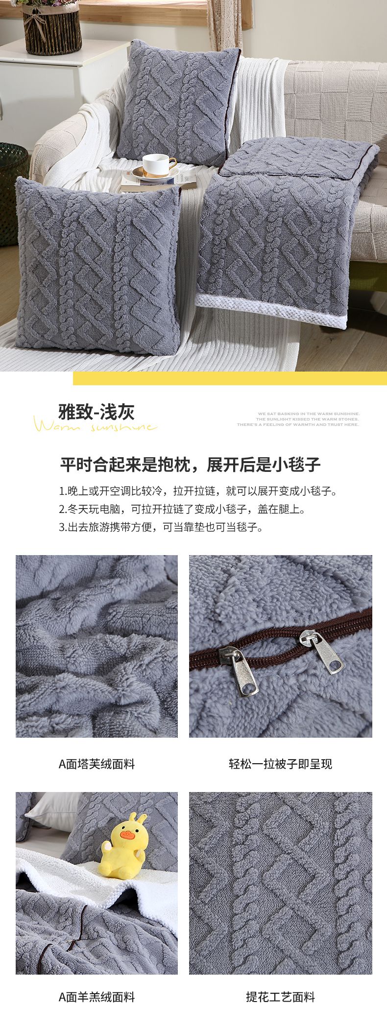 商品名称:伊可爱抱枕被 2023新款塔芙绒提花抱枕被毛毯 雅致浅灰