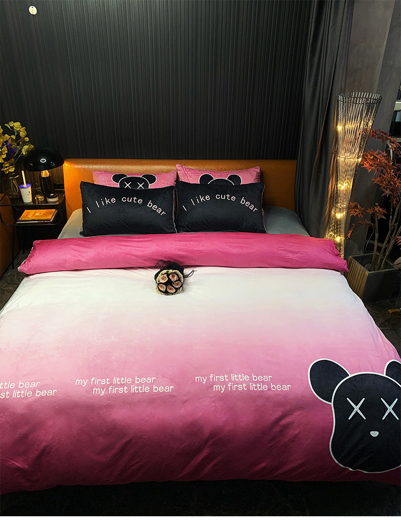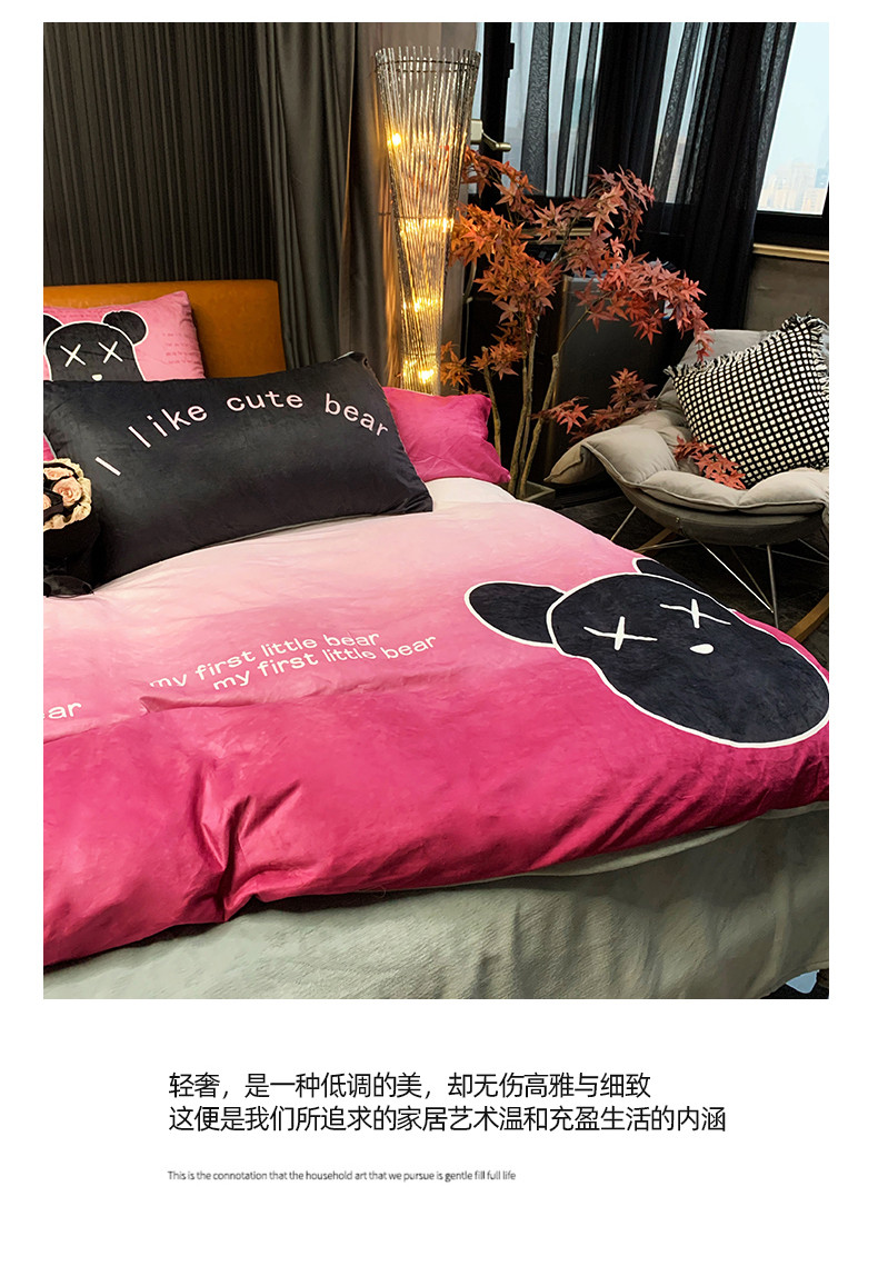 商品名称:色鬼布艺 2023新款活性数码印花牛奶绒四件套-场景一 渐变熊