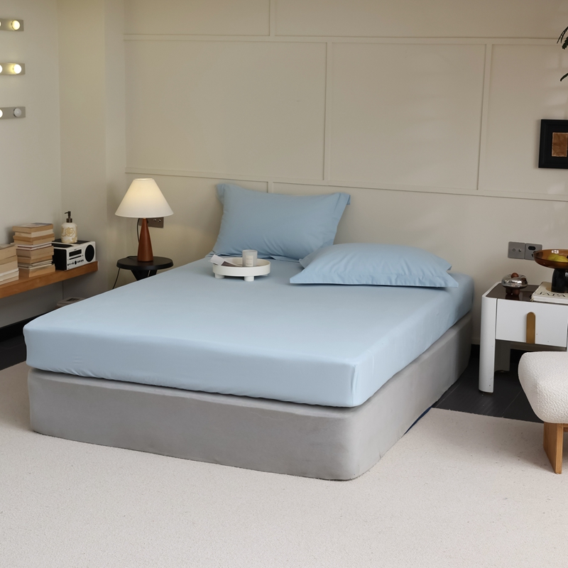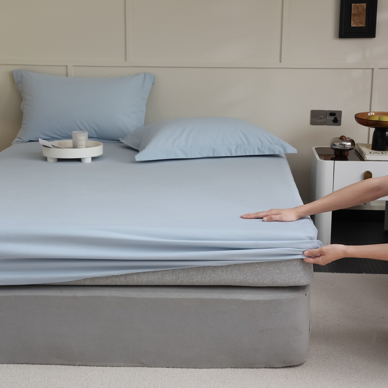 蕊姿家居 2023新款A类加厚50s超柔全棉长绒棉磨毛床笠 天空蓝