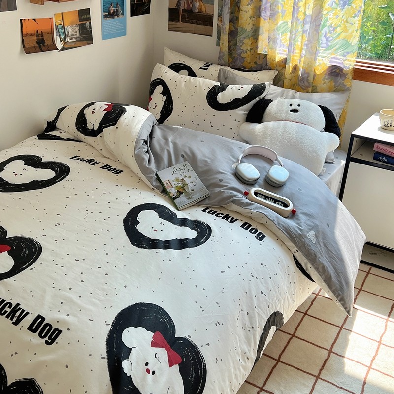 桃喜 2024开学季新款40支13372全棉四件套 爱心狗