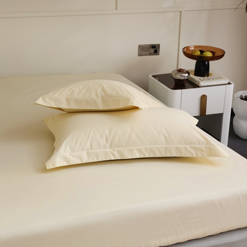 蕊姿家居 2023新款A类加厚50s超柔全棉长绒棉磨毛枕套 米黄