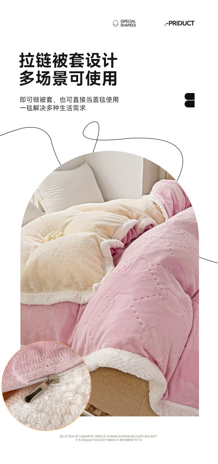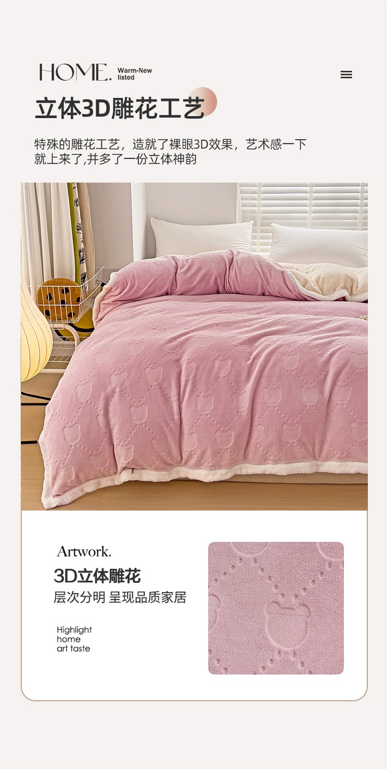 商品名称:法澳 2023新款220克牛奶绒雕花烂花多功能单被套 甘比熊-浅紫