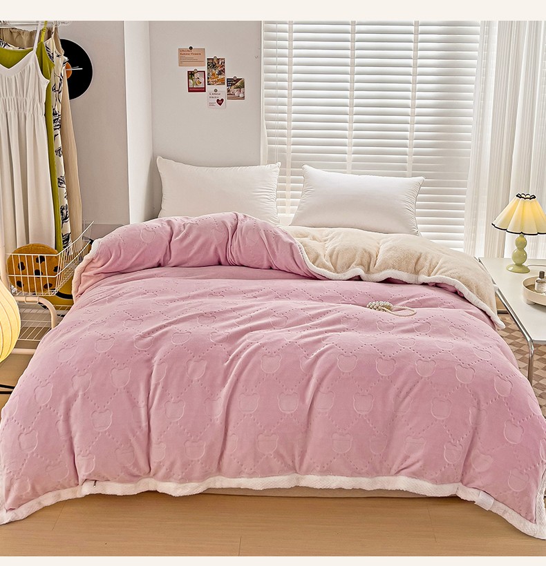 法澳 2023新款220克牛奶绒雕花烂花多功能单被套 甘比熊-浅紫