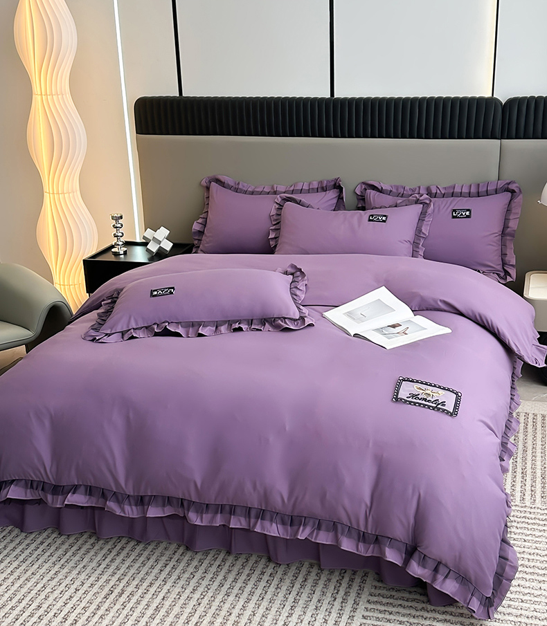 商品名称:小主驾到 2023新款韩版公主风荷叶边少女心四件套黑色蕾丝纱-画纱 画纱深紫