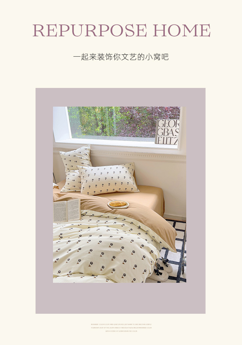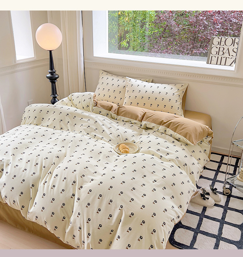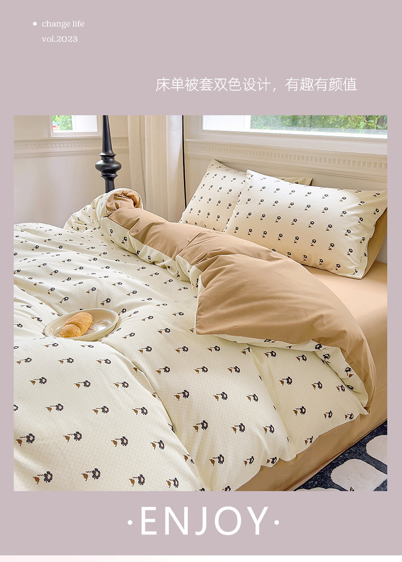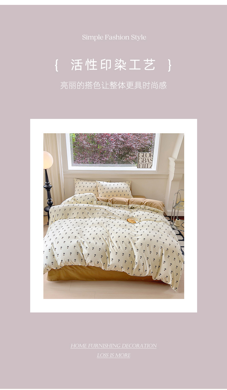 (总)田野 2022新款水洗棉小清新小碎花全棉四件套,花丛,花涧,绿婉,曼舞,桃夭,甜馨草莓,兔兔,银杏