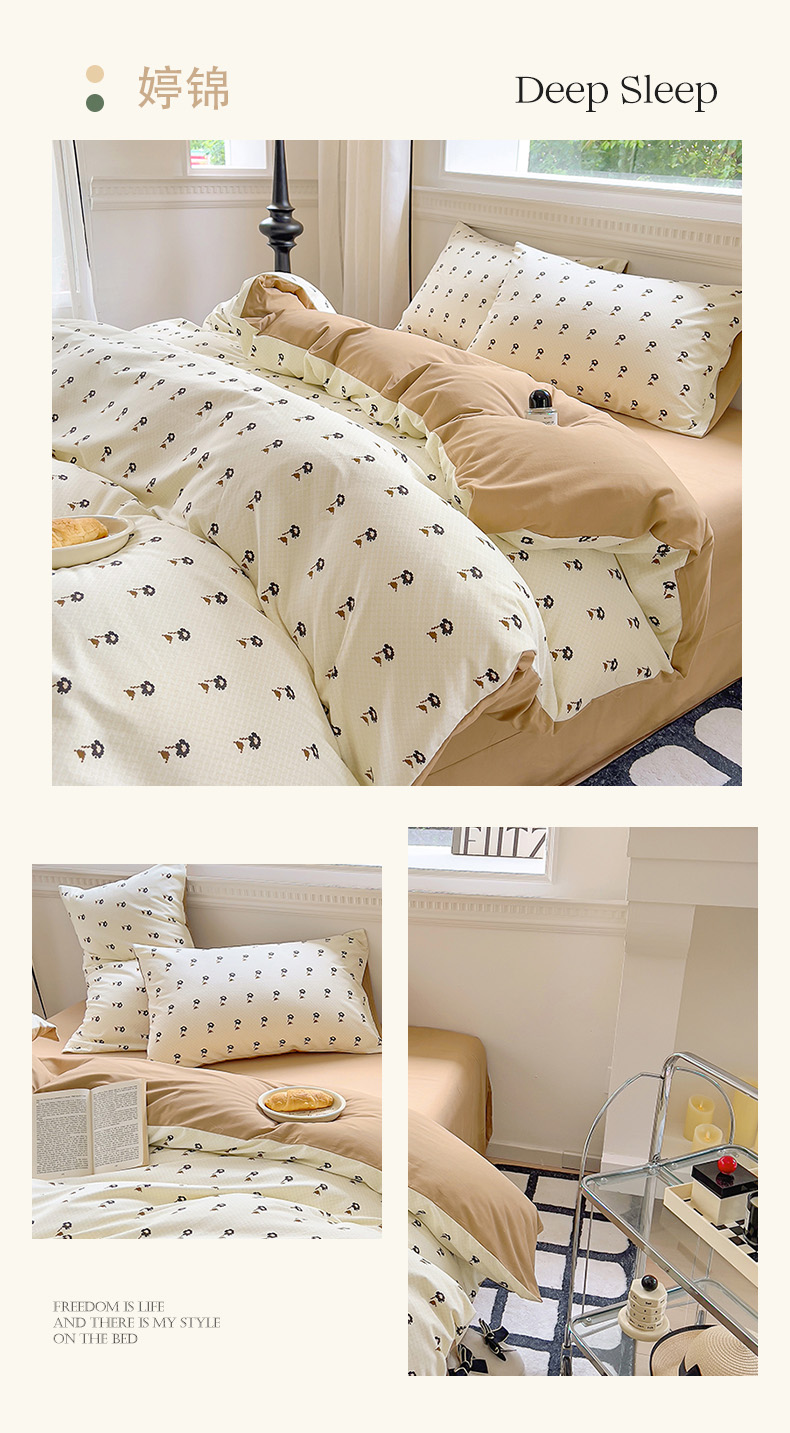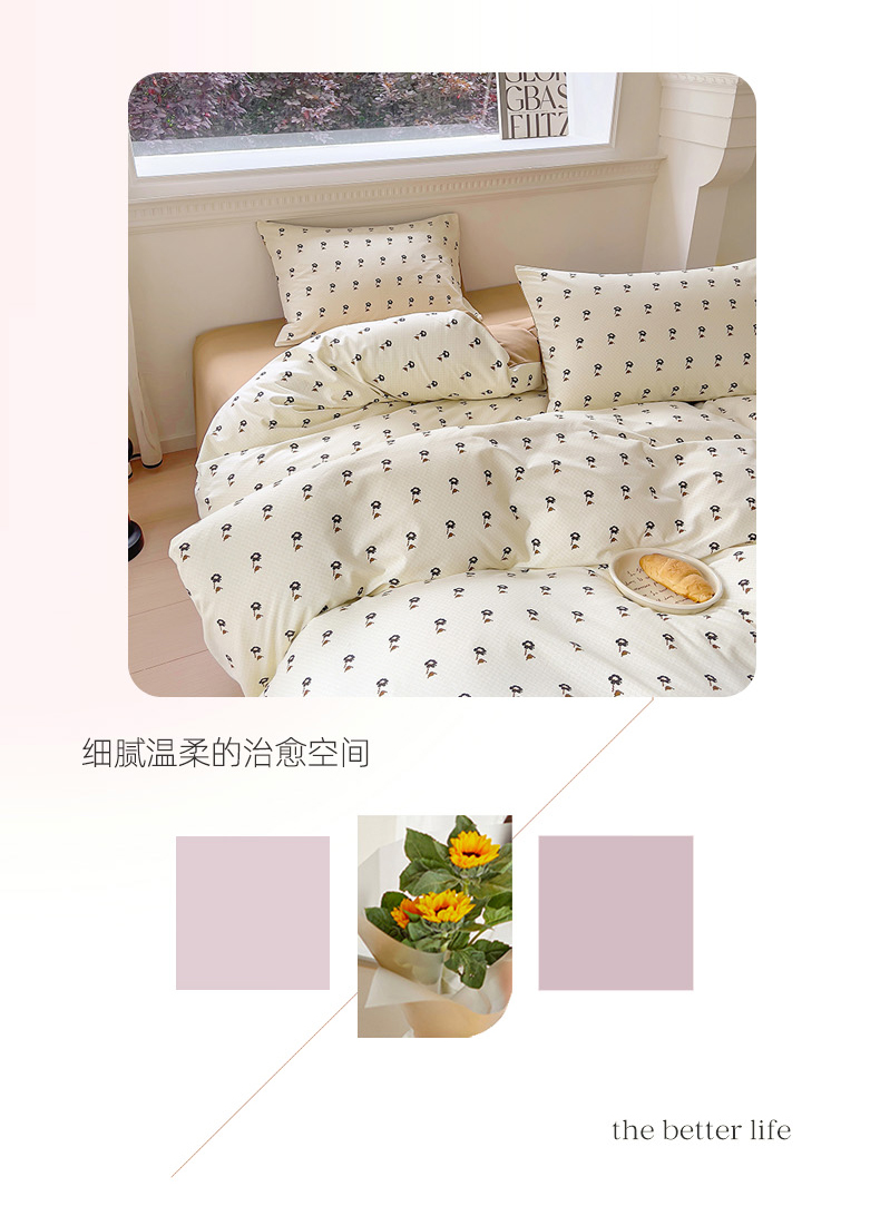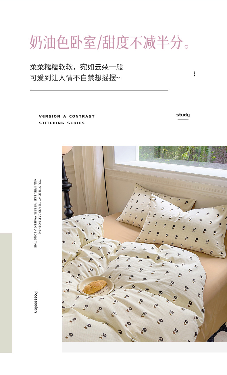 (总)田野 2022新款13372全棉小清新小碎花四件套,嘟嘟奶牛,粉诺,浮光,海豚之恋,花梦-黄,花梦-紫,花束,花田,景色,梨落,曼秋,奇异果,晴天,圈圈点点,躺着逆袭,西米,摇曳,樱花粉