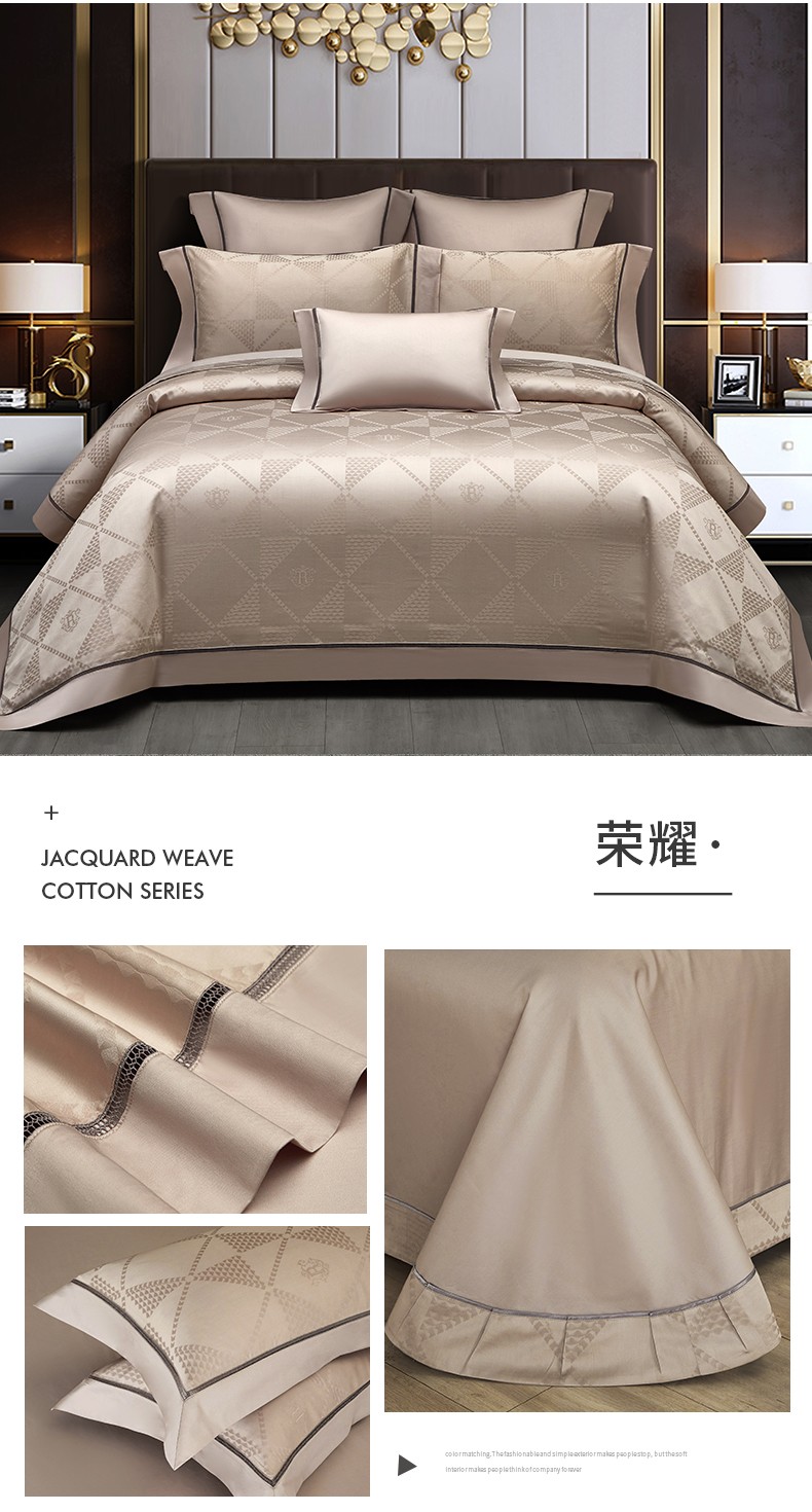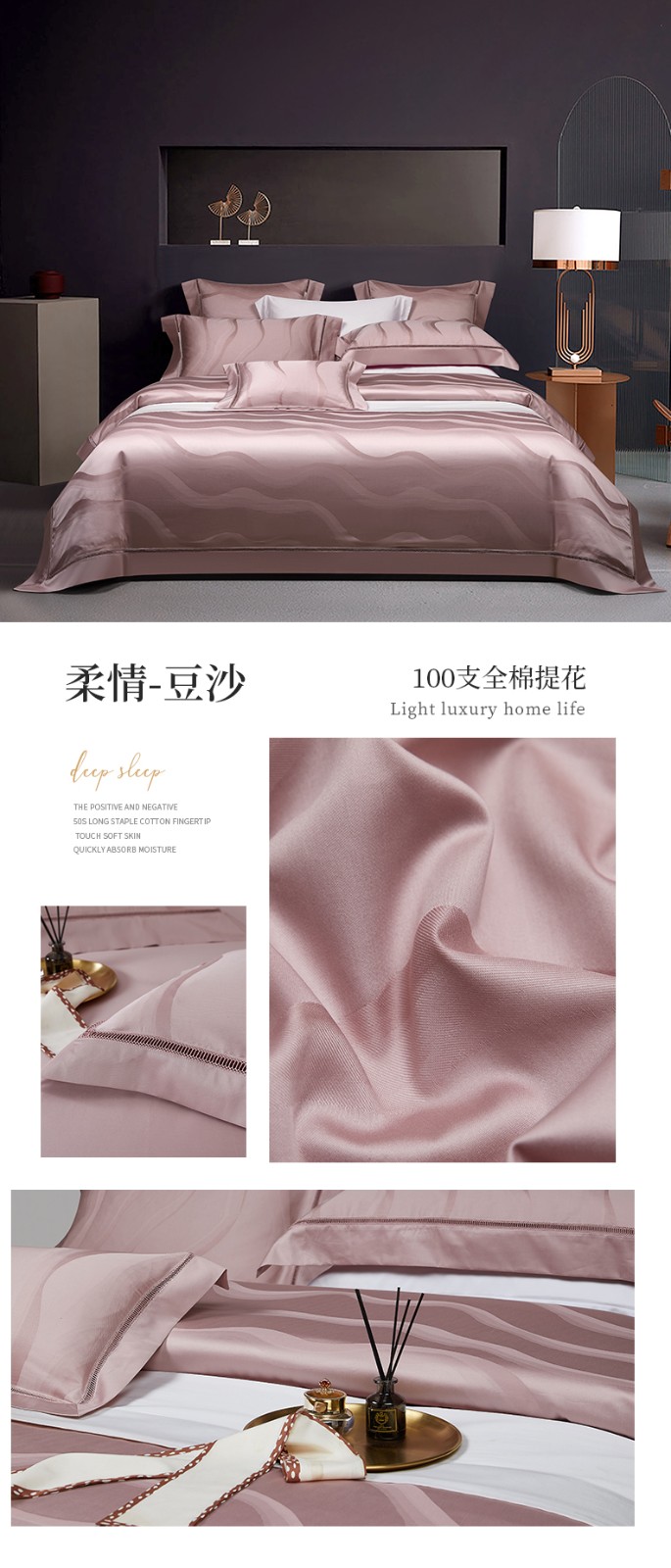 100支100S全棉提花四件套可配七件套可定制长绒棉直播爆款 柔情豆沙