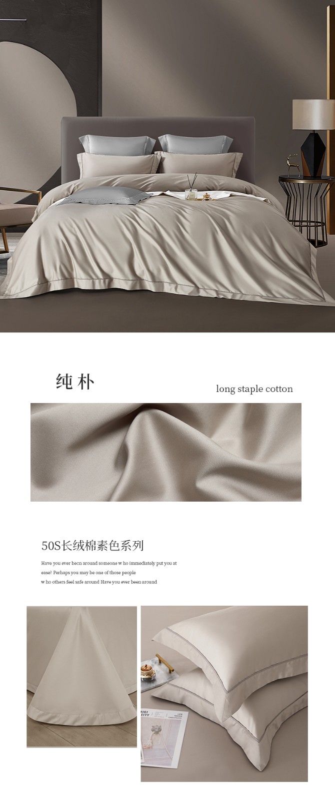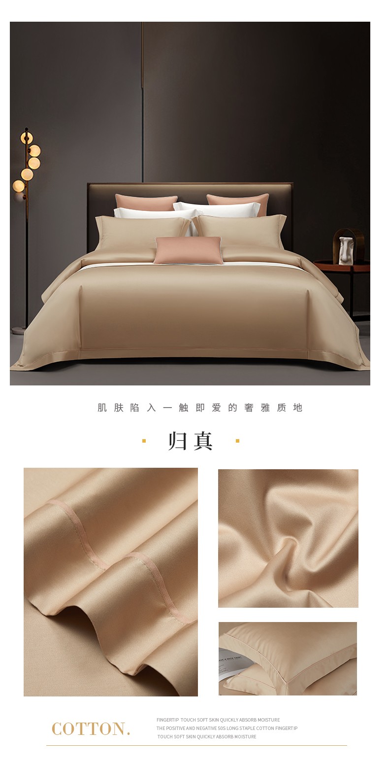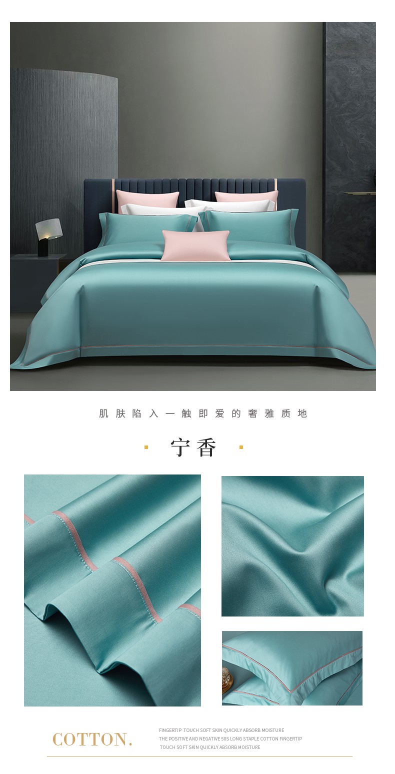 50支50S纯色长绒棉四件套可选七件套可定制直播爆款 喜悦