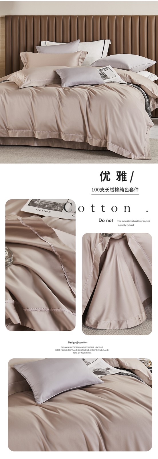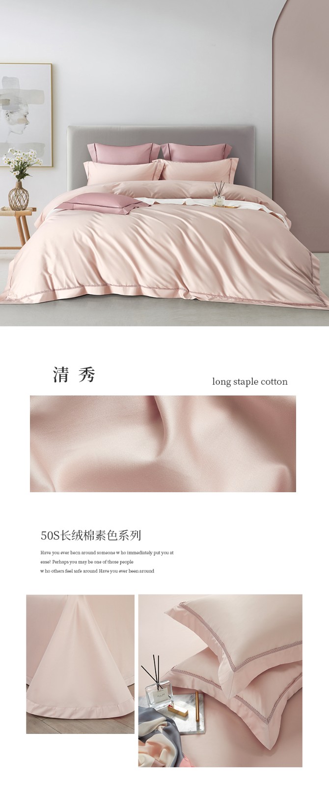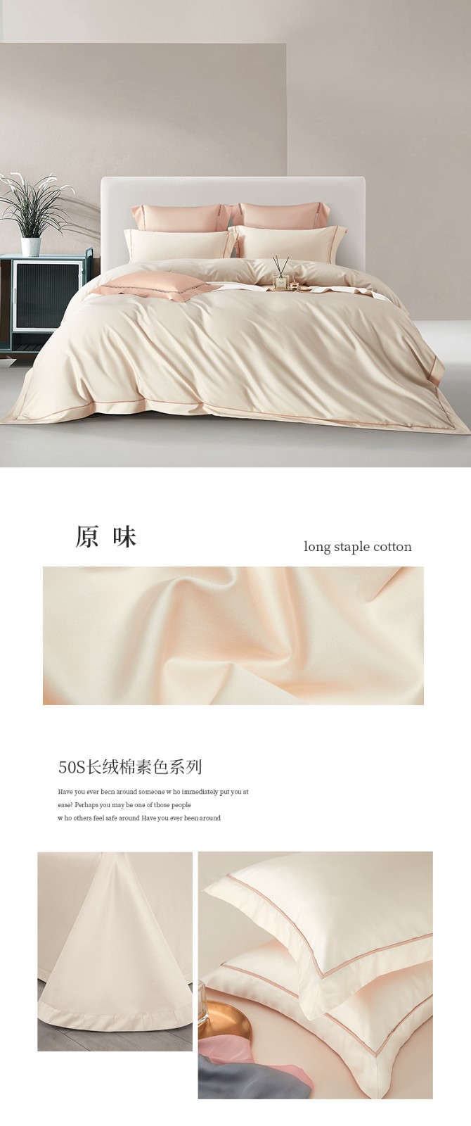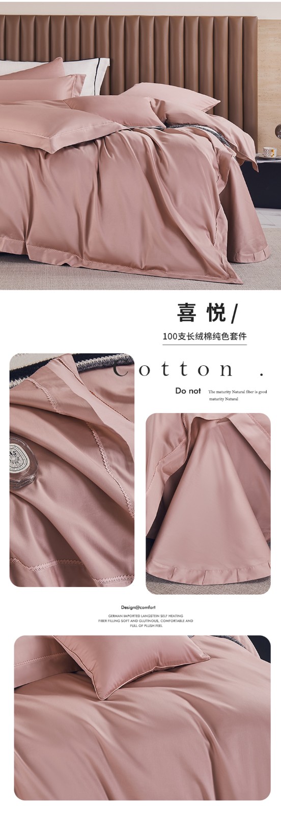 商品名称:50支50S纯色长绒棉四件套可选七件套可定制直播爆款 喜悦