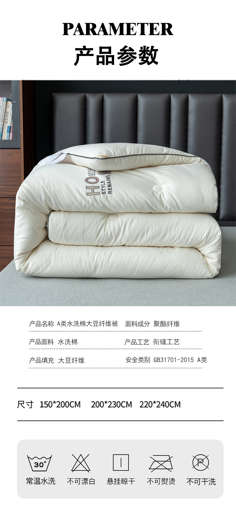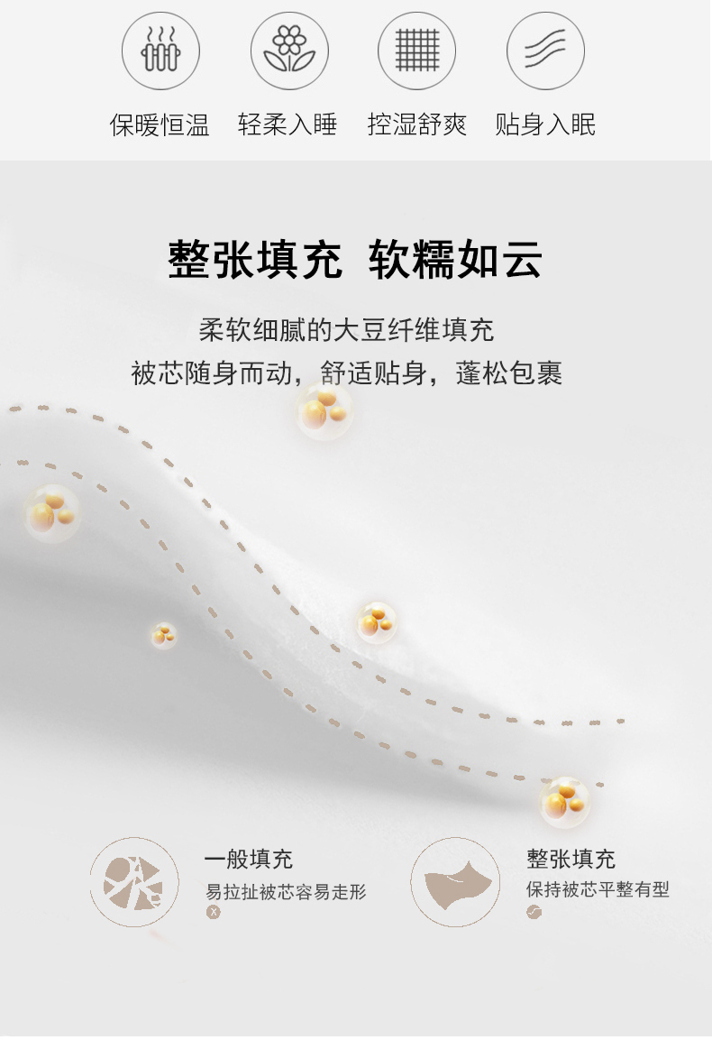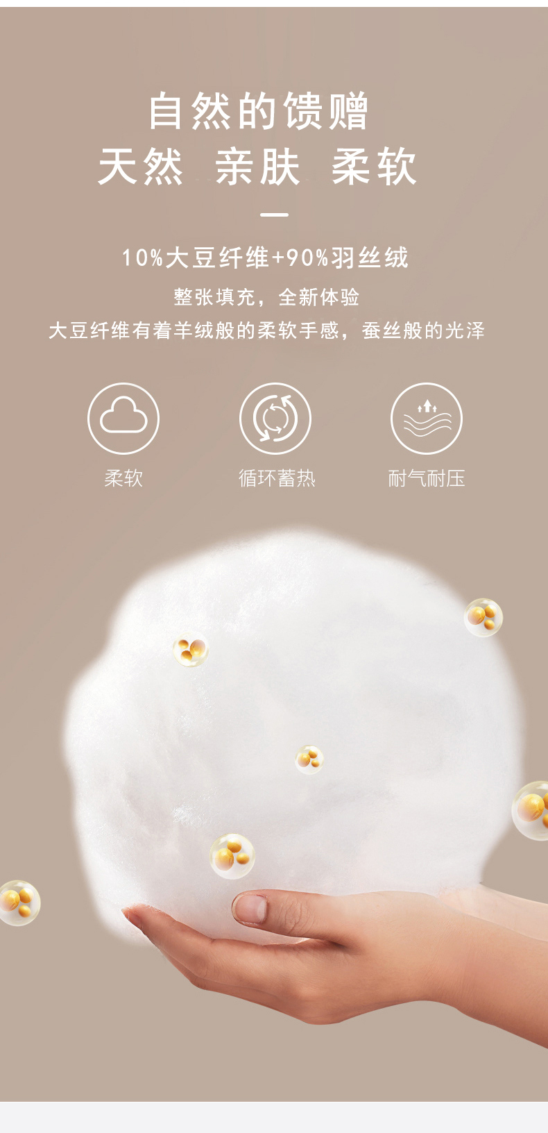 • 填充纤维种类: 大豆蛋白改性聚酯纤维