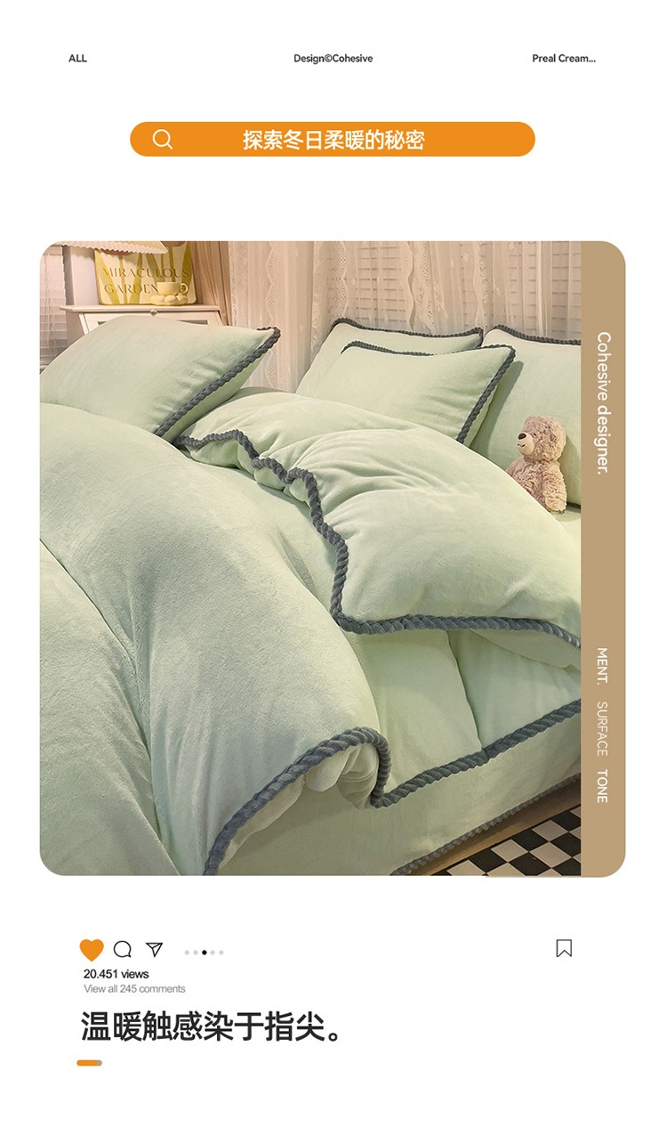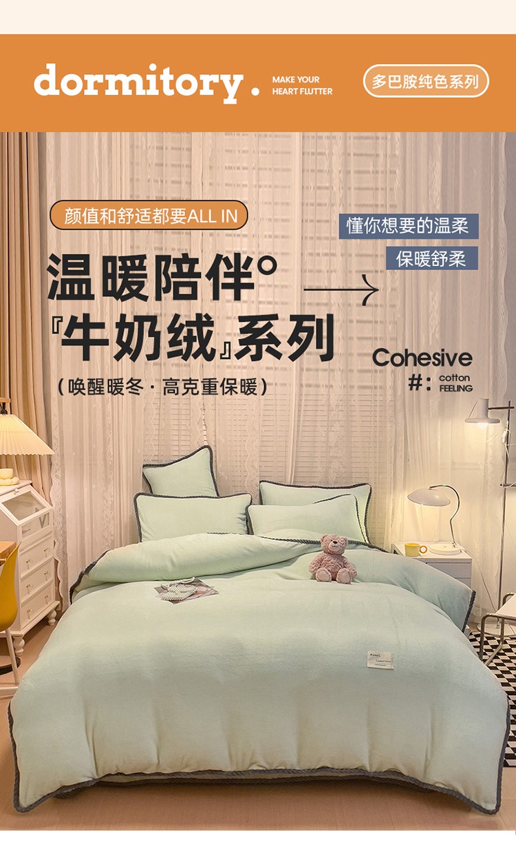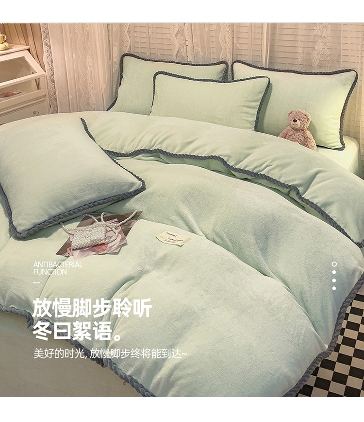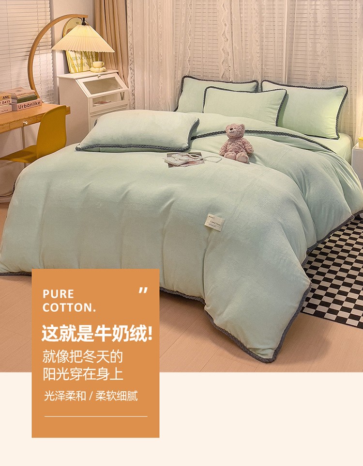 商品名称:2023新款加厚牛奶绒纯色优雅四件套 优雅-抹茶