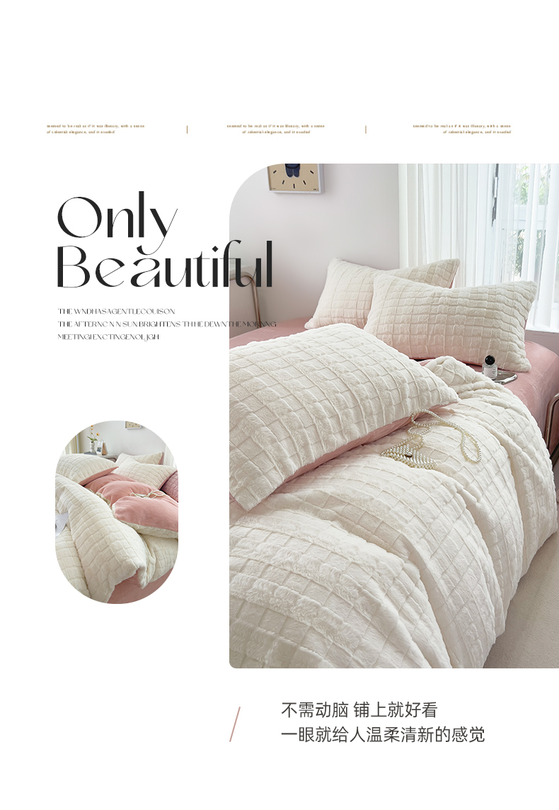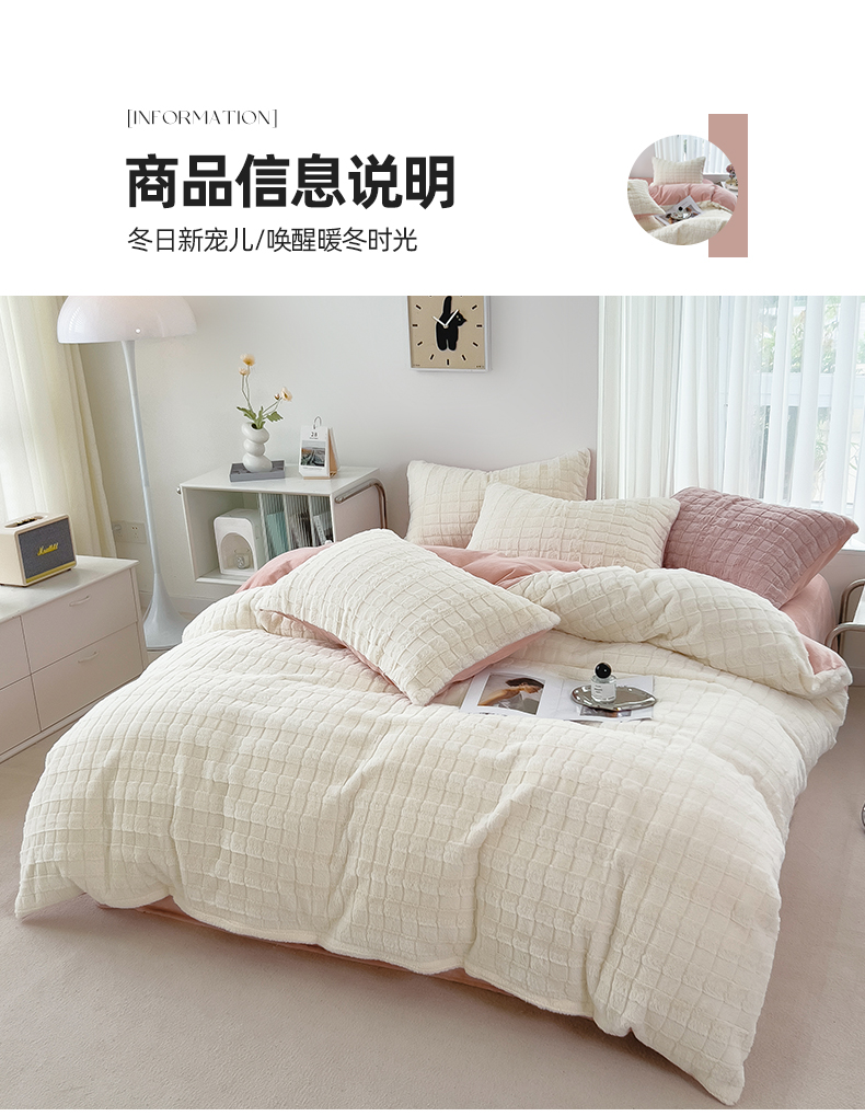 商品名称:丝印良品 2023秋冬新款320克兔兔绒四件套 奶白粉