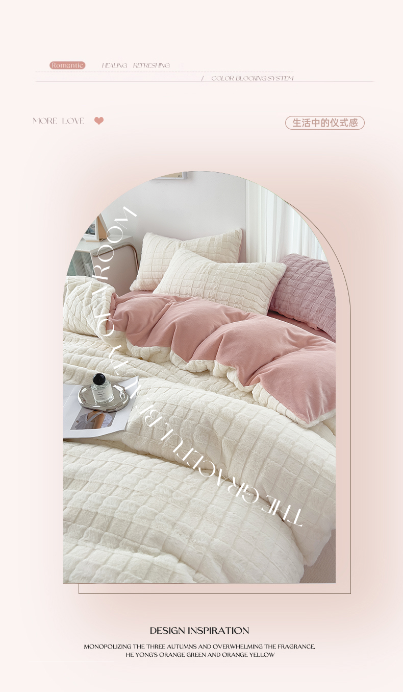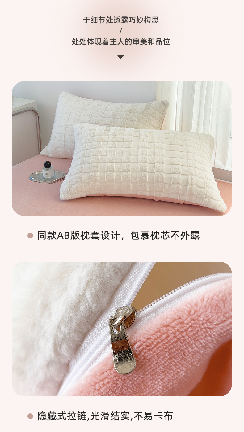 丝印良品 2023秋冬新款320克兔兔绒四件套 奶白粉
