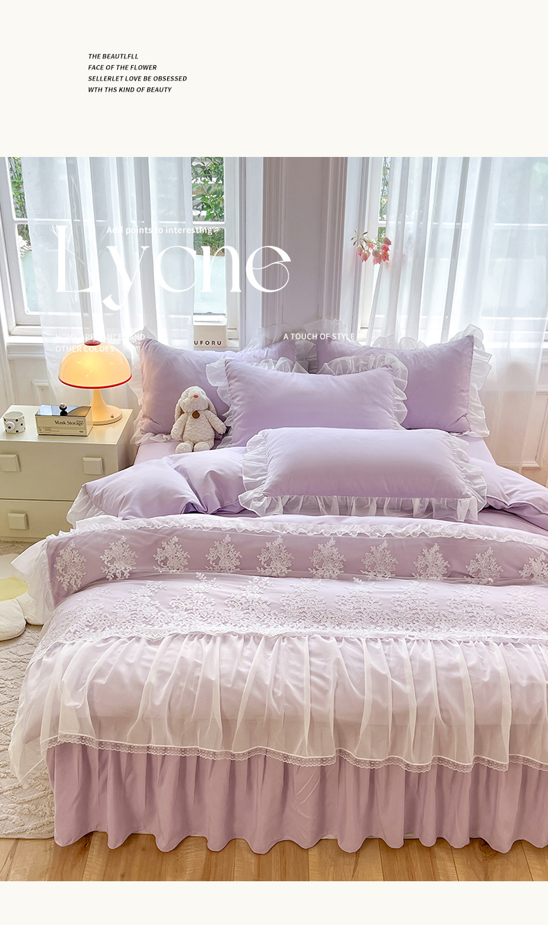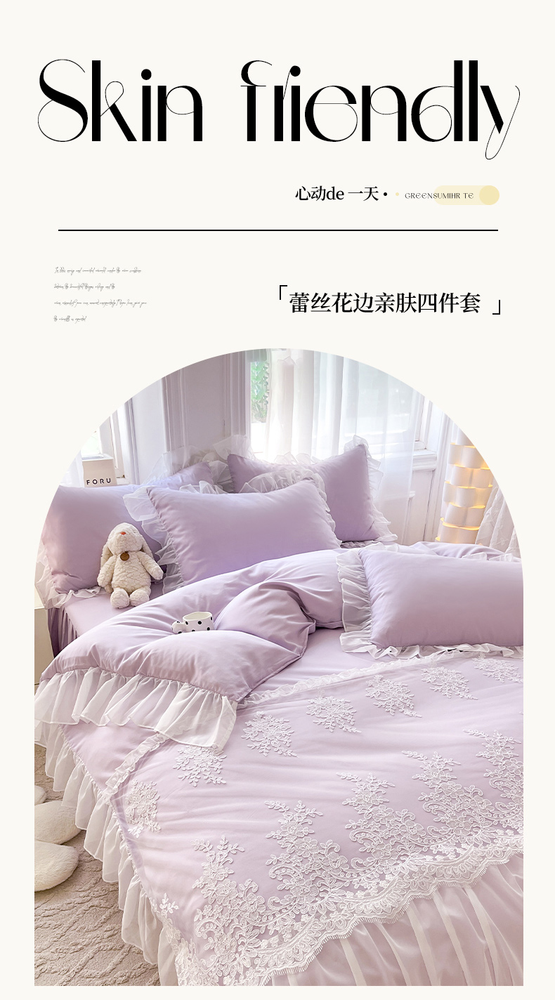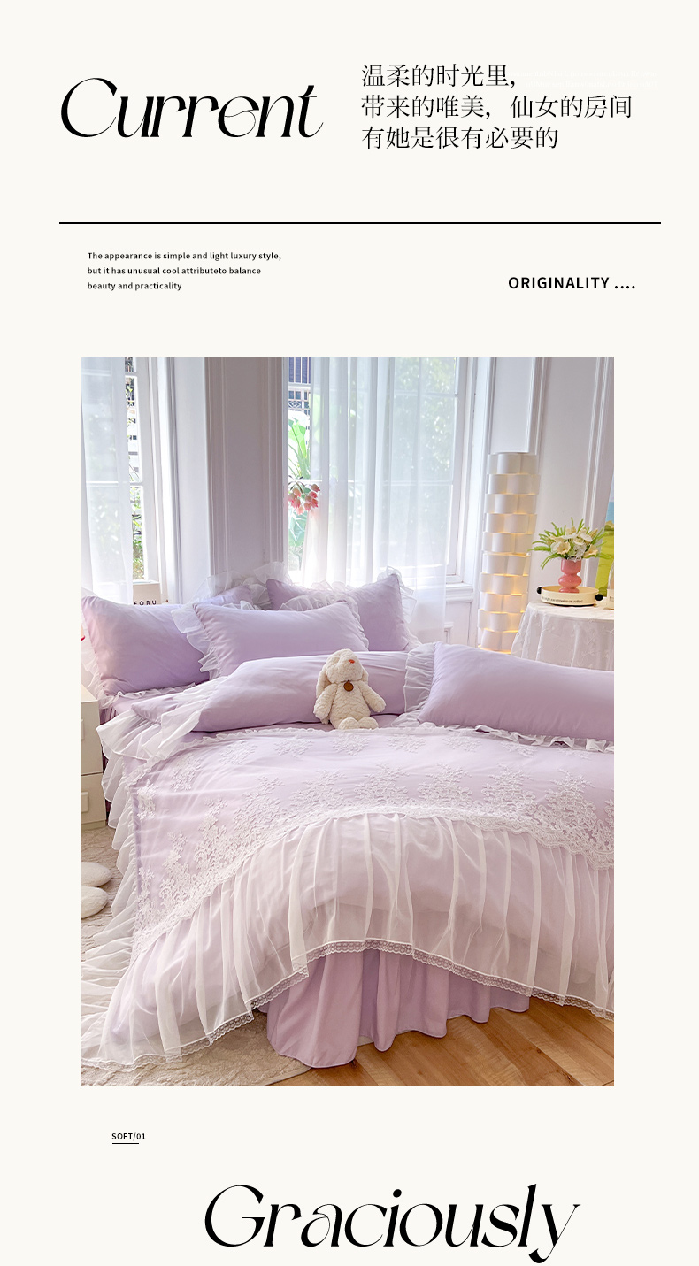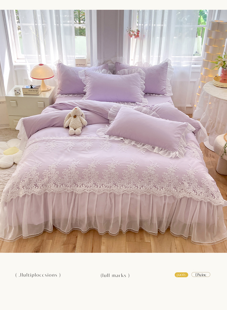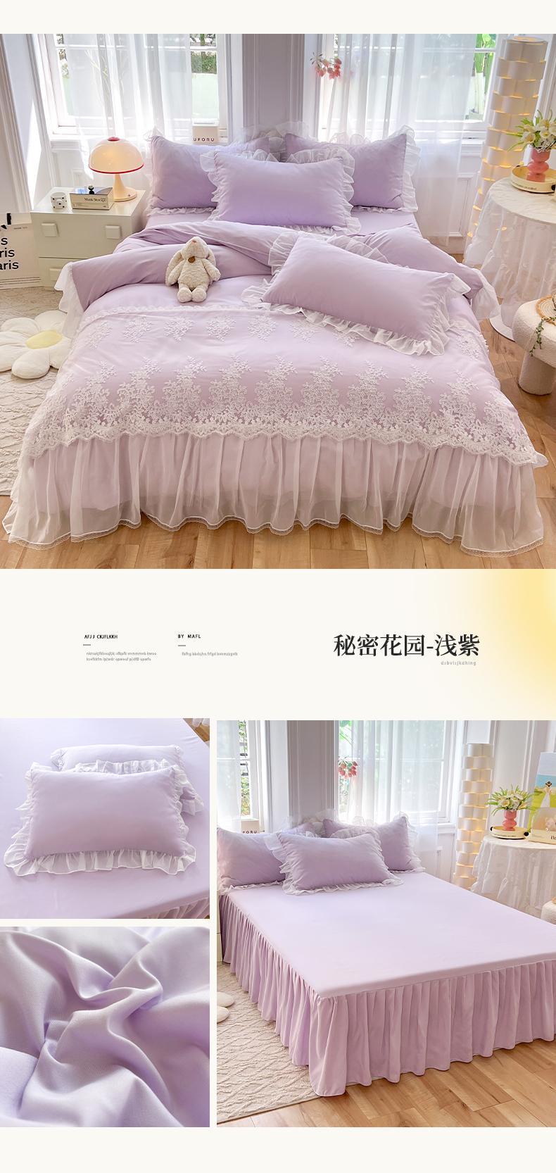 (总)唐人居 2026新款水洗棉花边床盖四件套-花影系列,花影-浅紫,花影-豆沙,花影-玫红,花影-暖橘,花影-苹果绿,花影-浅粉,花影-浅灰