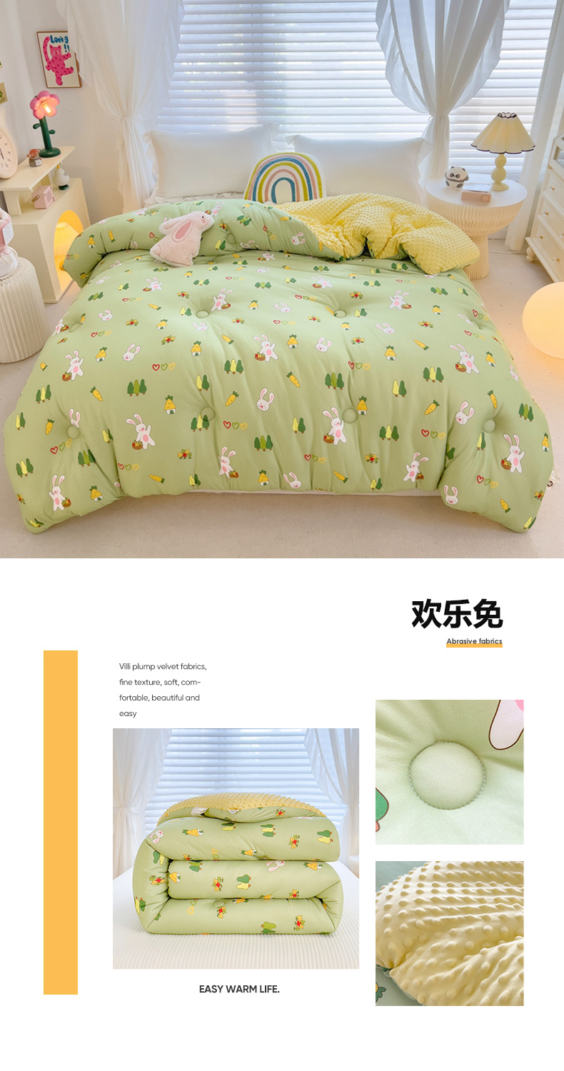 • 91家纺网 家纺一手货源 找家纺 米菲2023新款A类针织棉豆豆被冬被春秋被被芯被子 欢乐兔