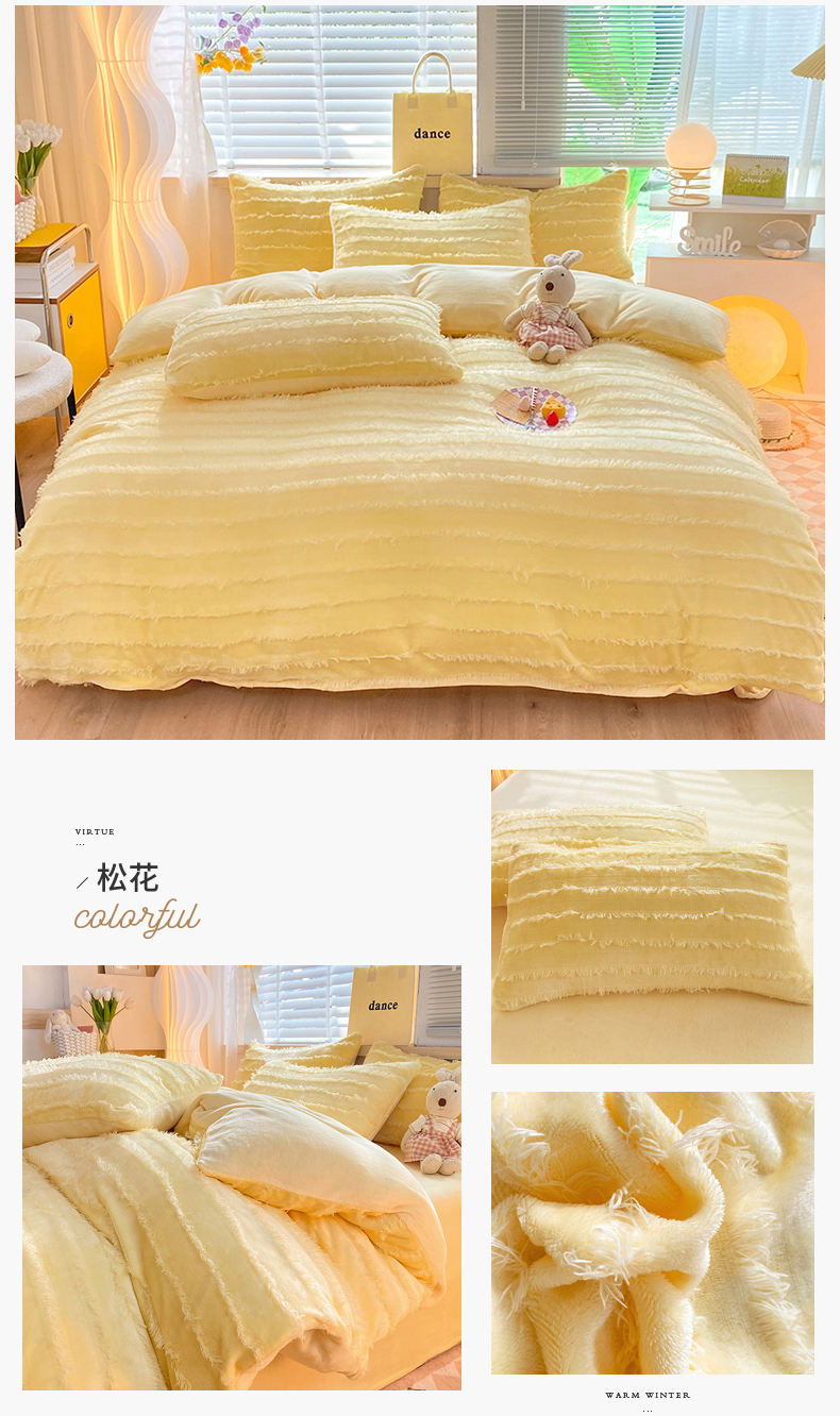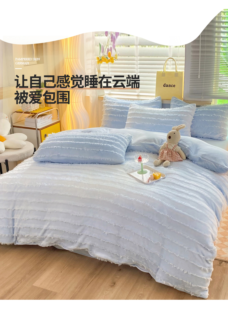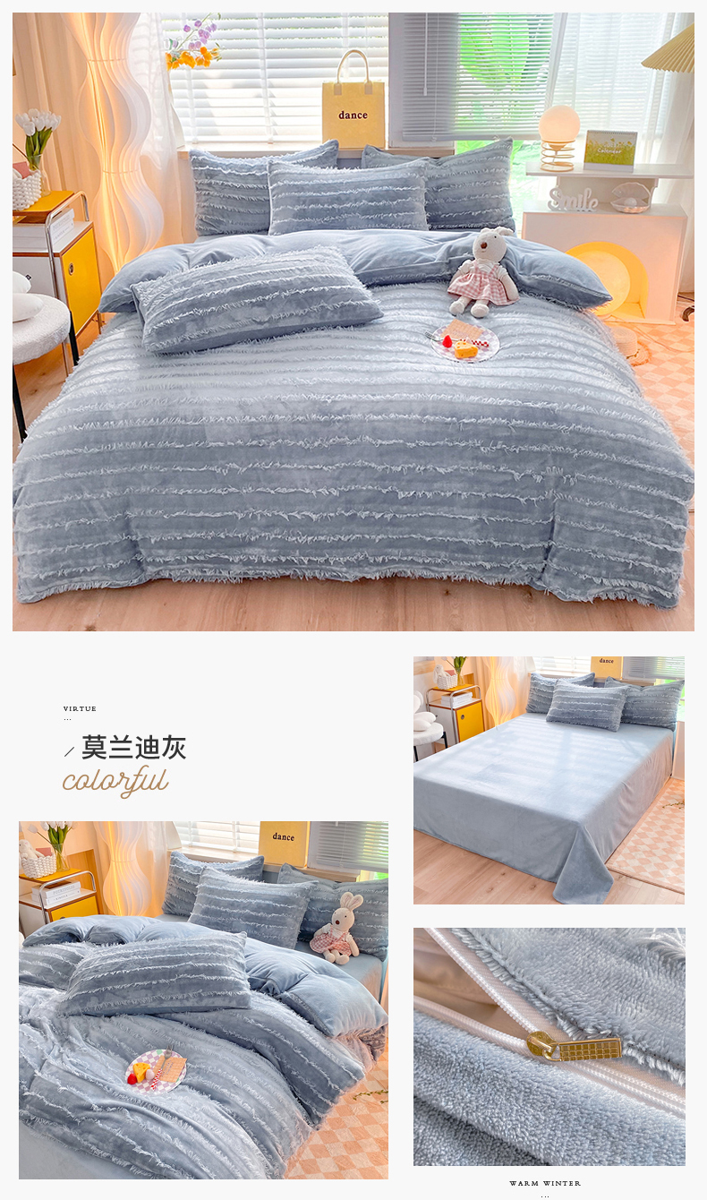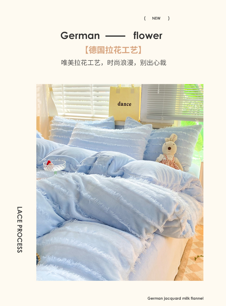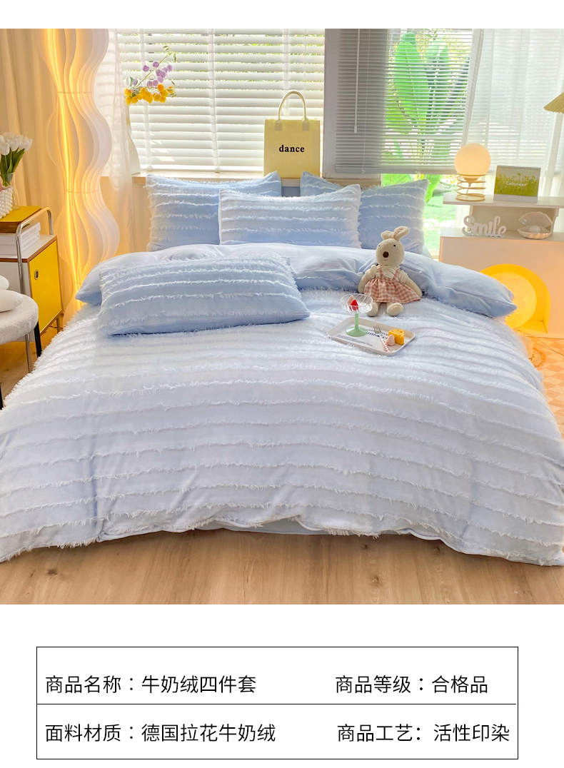 (总)丝印良品 2023秋冬新款牛奶绒提花简约款牛奶绒四件套