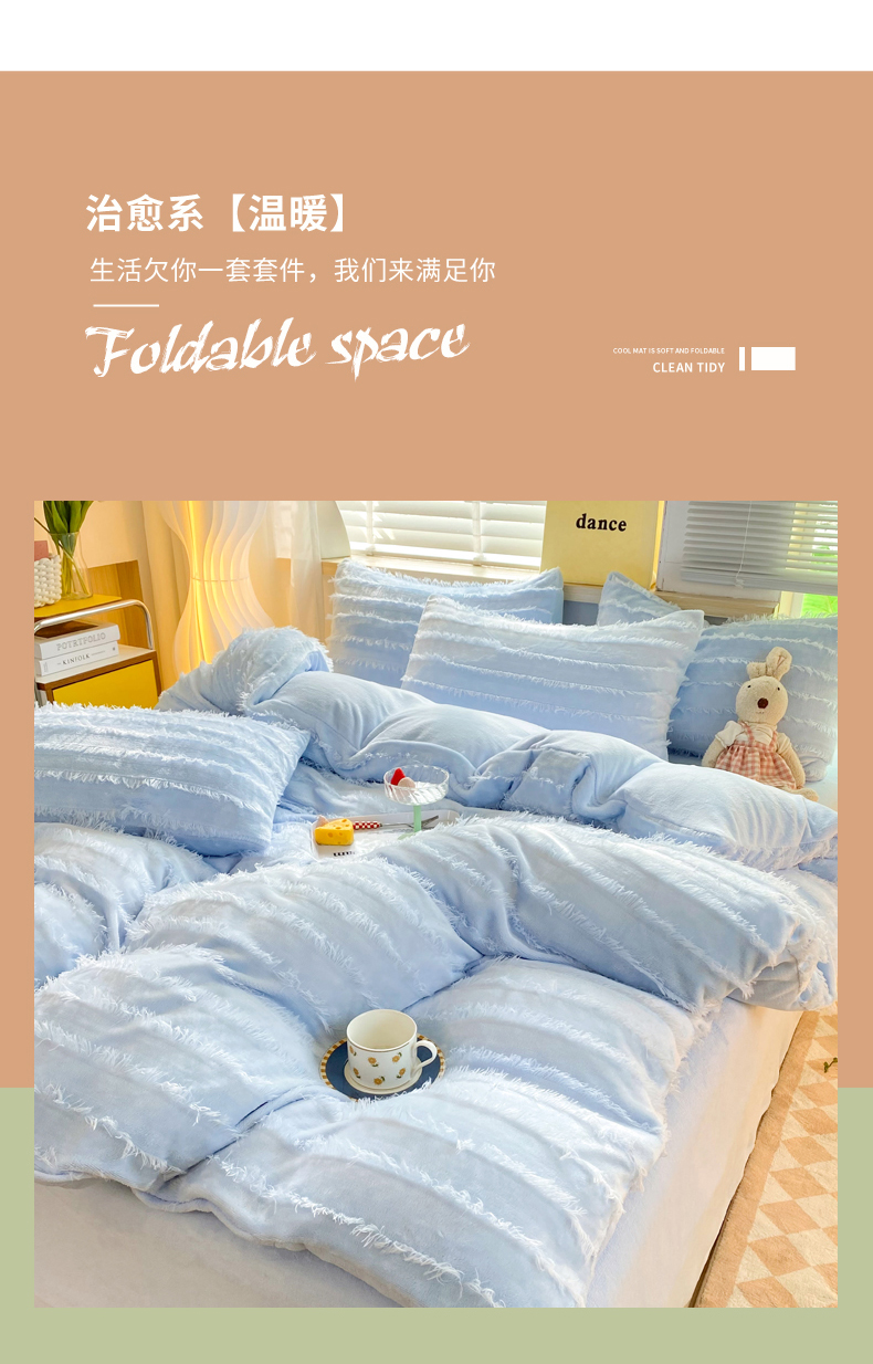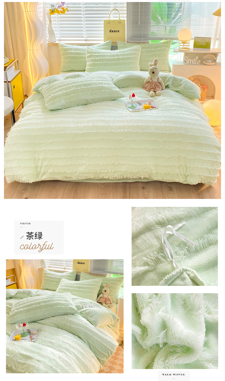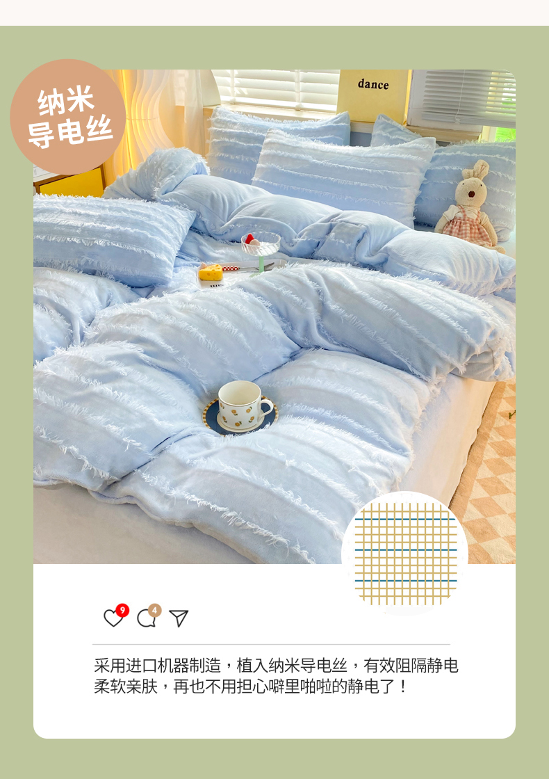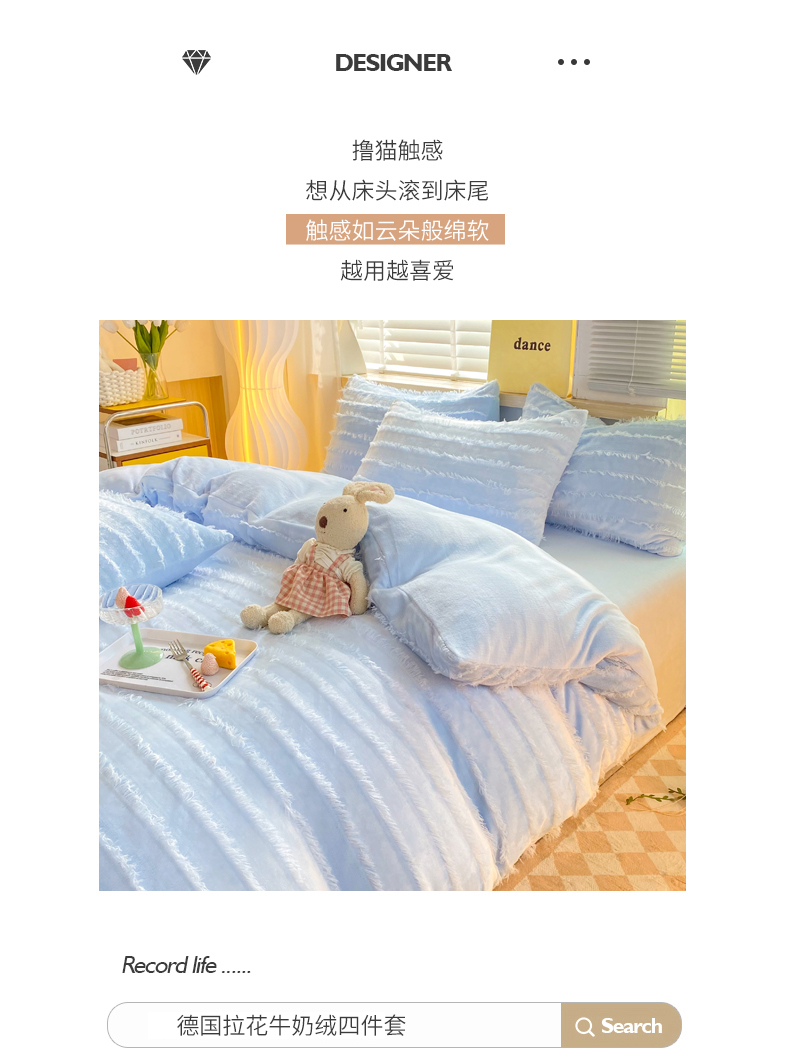 (总)丝印良品 2023秋冬新款牛奶绒提花简约款牛奶绒四件套
