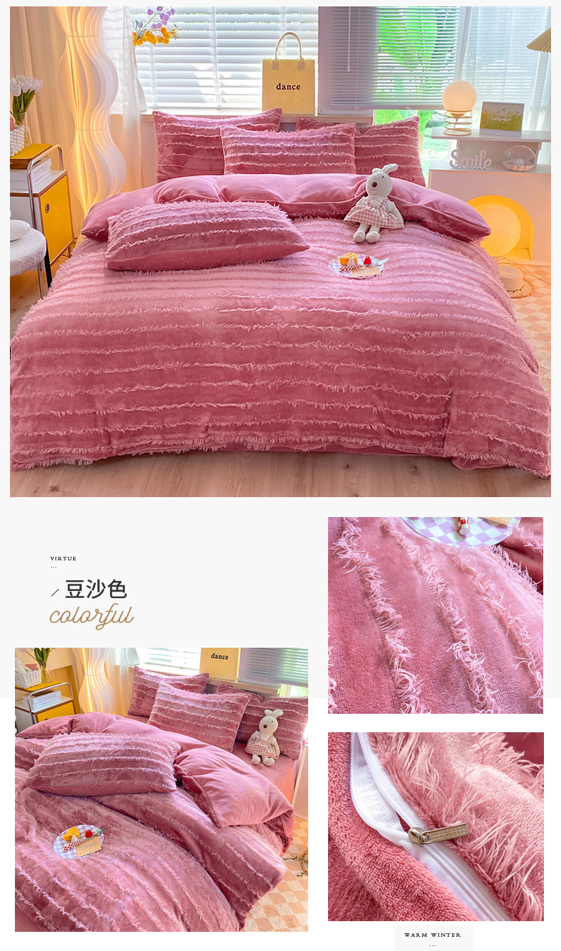 丝印良品 2024直播秋冬高克重500克床裙款泡泡四件套纯色印花泡泡-甜心粉,泡泡-甜心粉