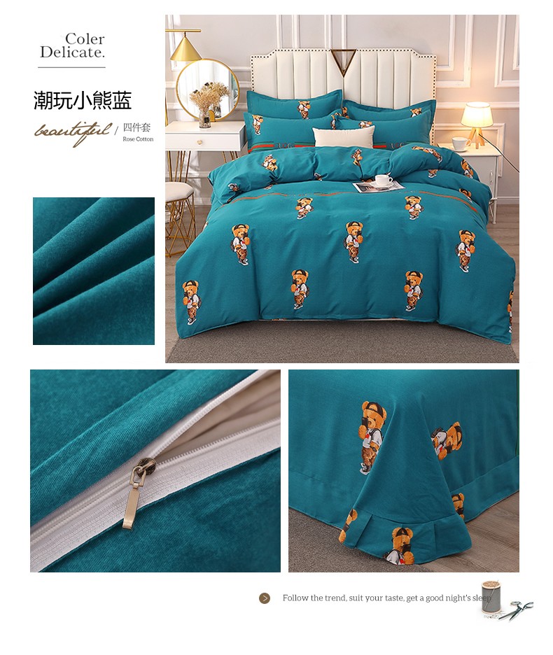 当前位置: 91家纺网 > 商品网购 > 床品套件 > 四件套 > 全棉普通四件套 > 晶缦 2023新款典雅系全棉活性磨毛四件套 潮玩小熊蓝