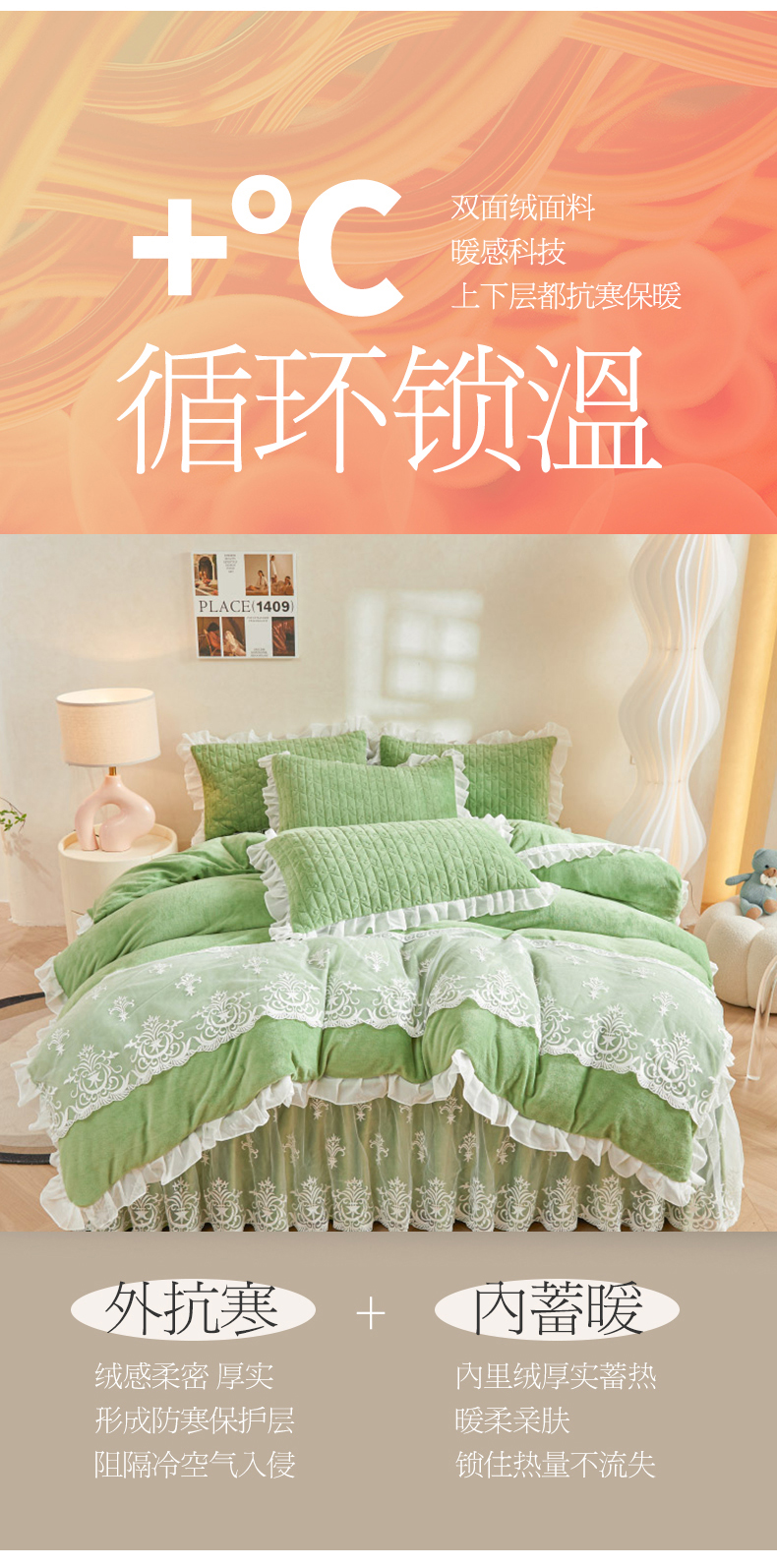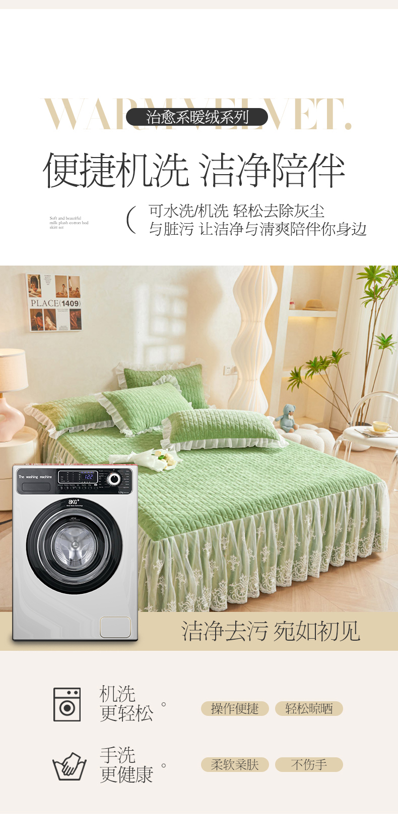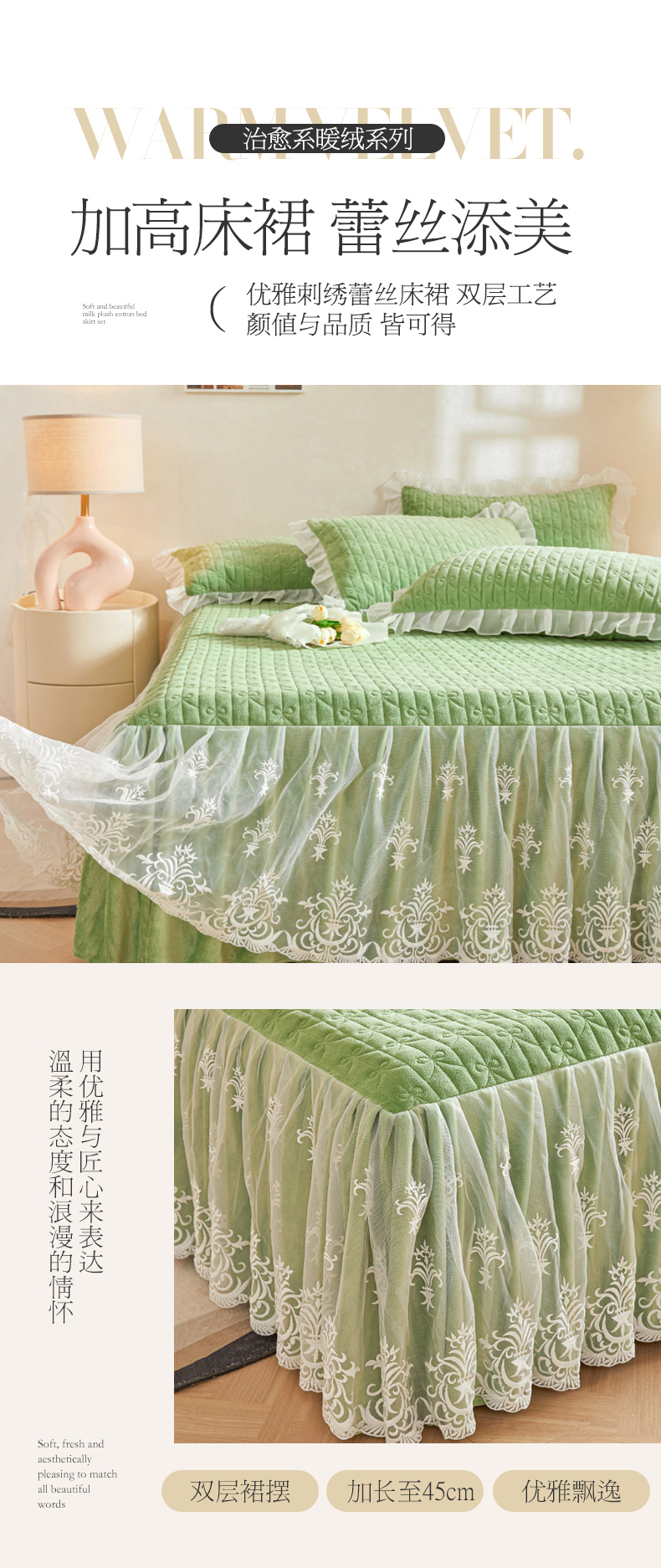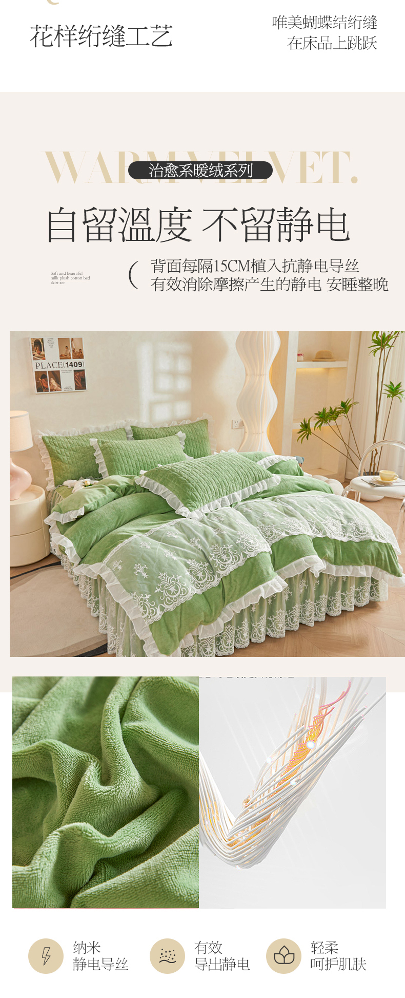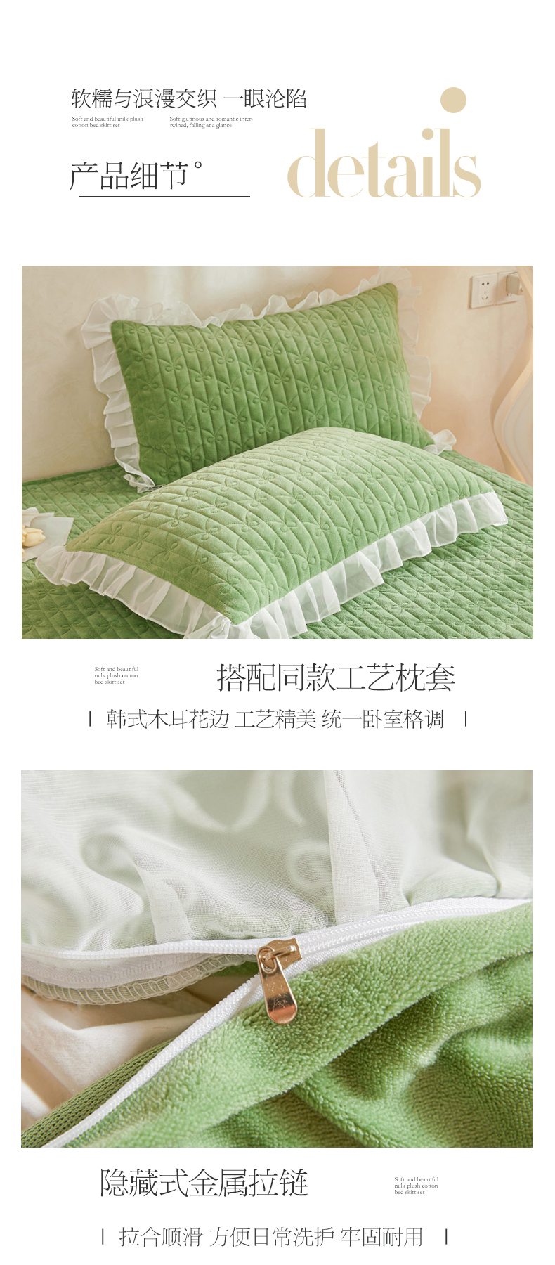 当前位置: 91家纺网 > 商品网购 > 床品套件 > 四件套 > 牛奶绒四件套 > 虹星家纺 2023新款牛奶绒夹棉床裙套件清新系列-床裙款四件套 清新-牛油果绿