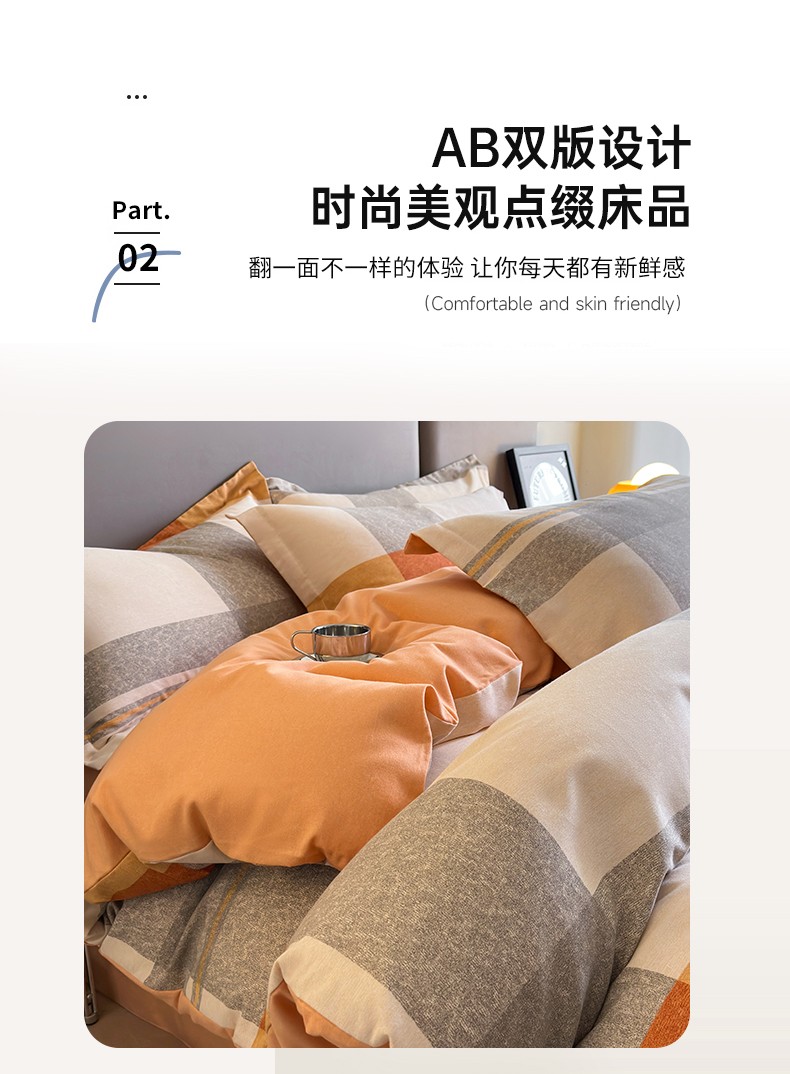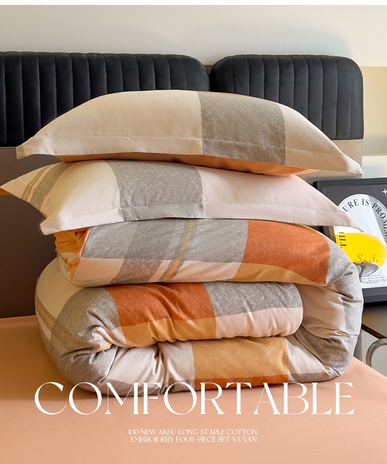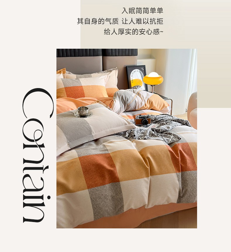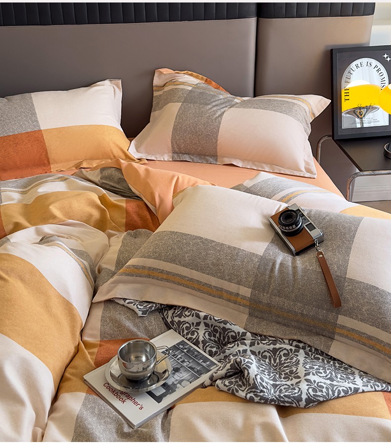 佰亿莱 2024直播爆款简约风全棉磨毛四件套格子系列 格韵