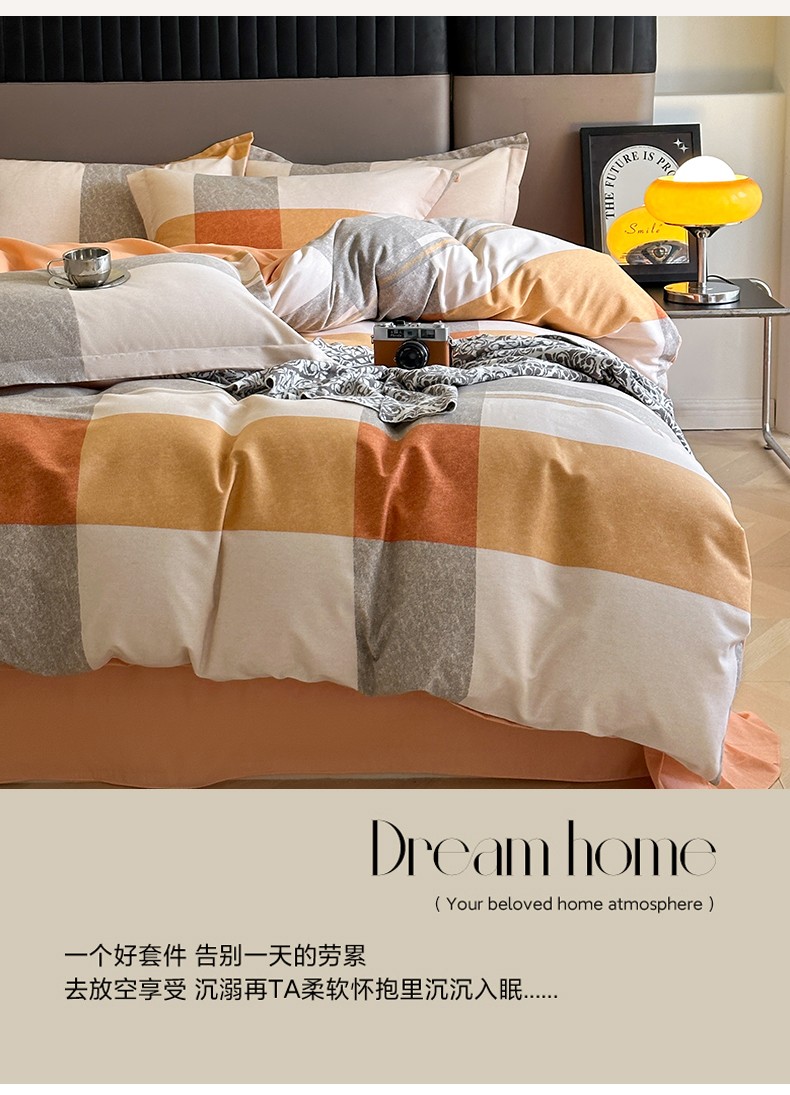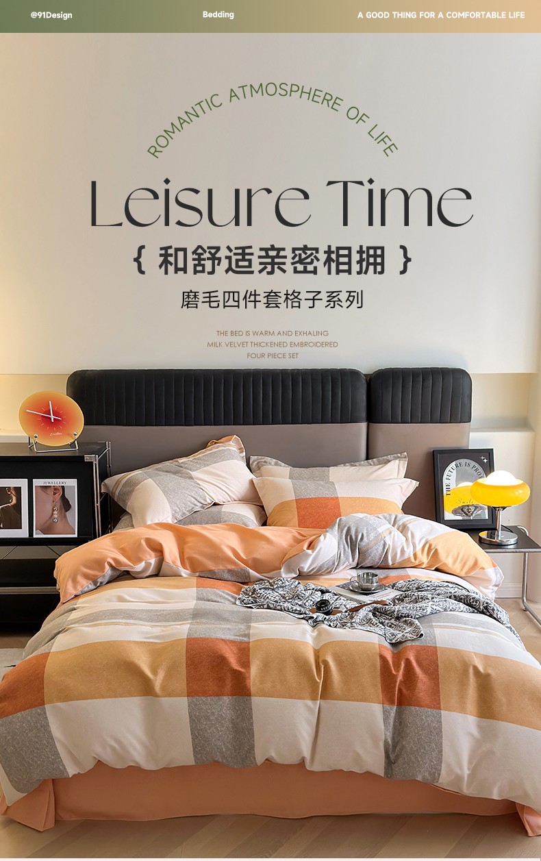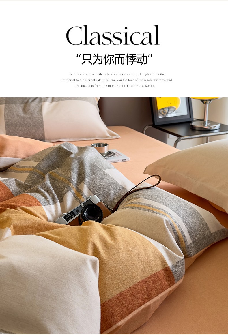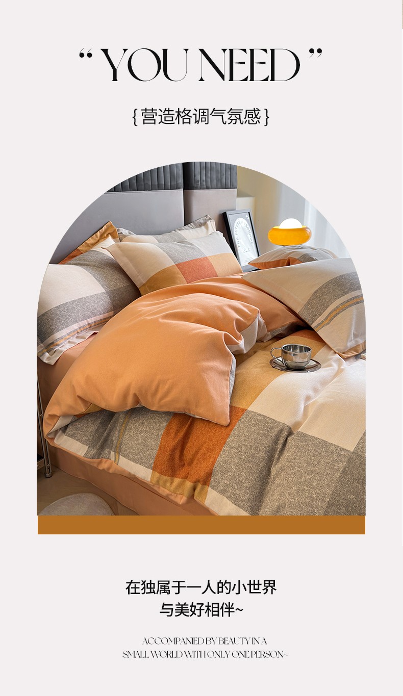 佰亿莱 2024直播爆款简约风全棉磨毛四件套格子系列 格韵
