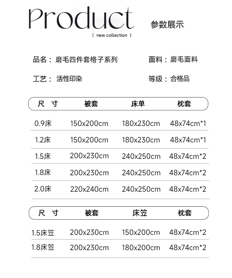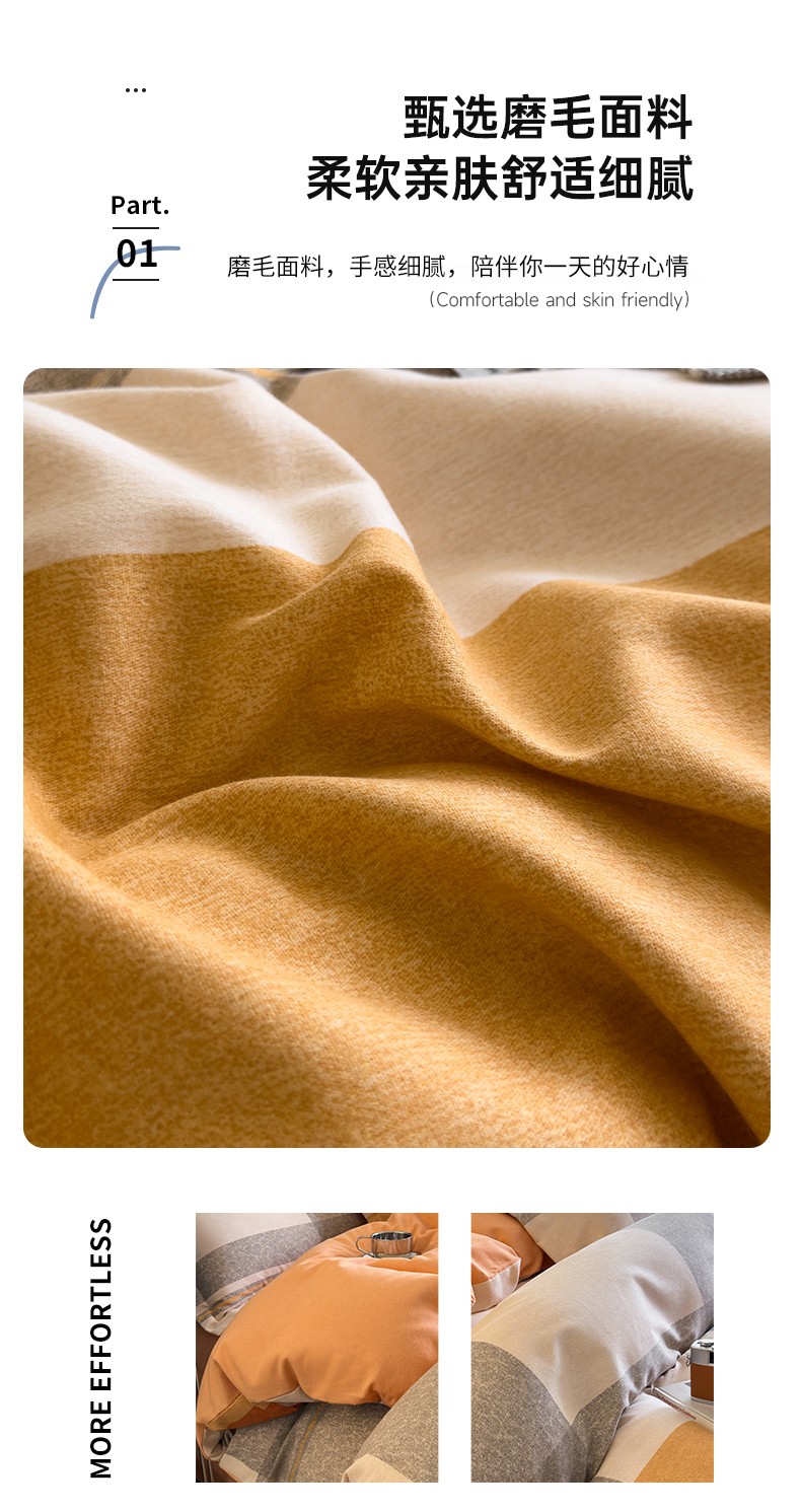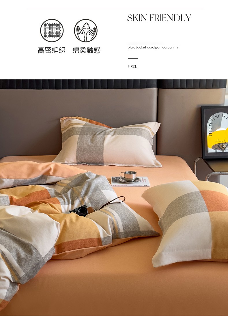 商品名称:佰亿莱 2024直播爆款简约风全棉磨毛四件套格子系列 格韵