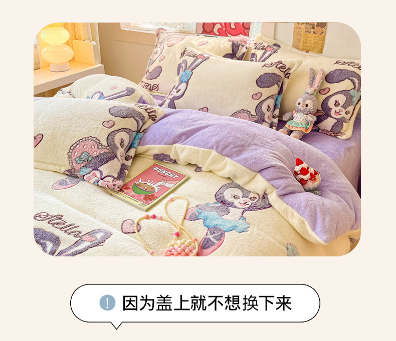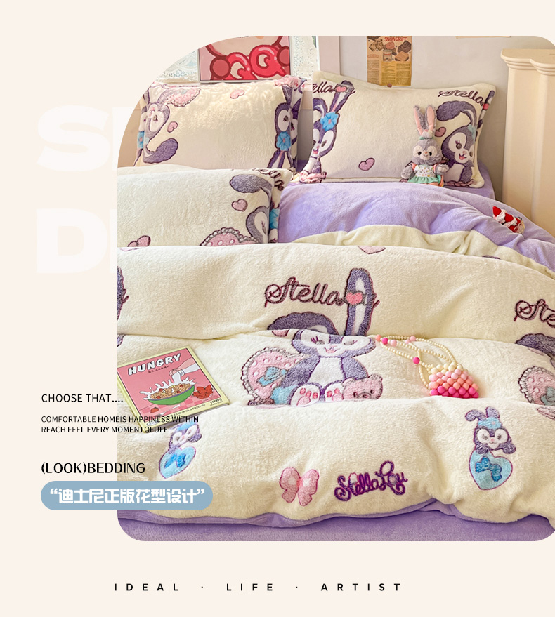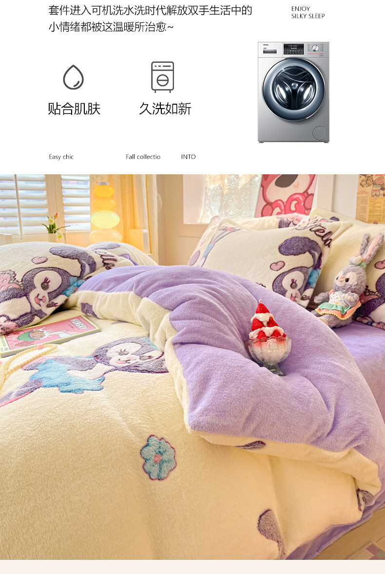 柒月家居 2023新款迪士尼雪花绒四件套 库洛米