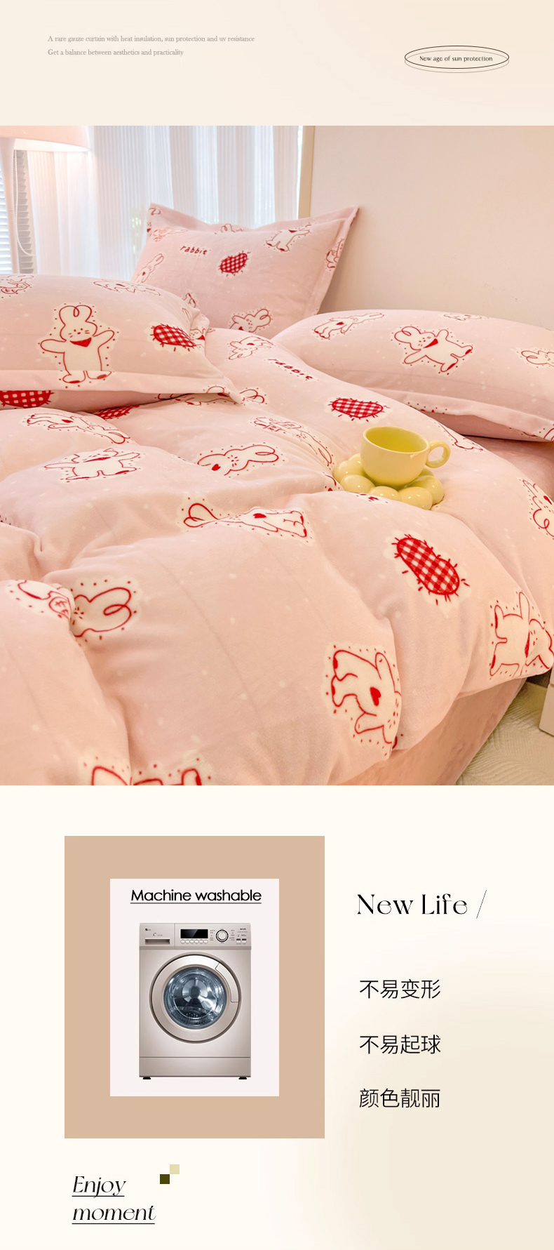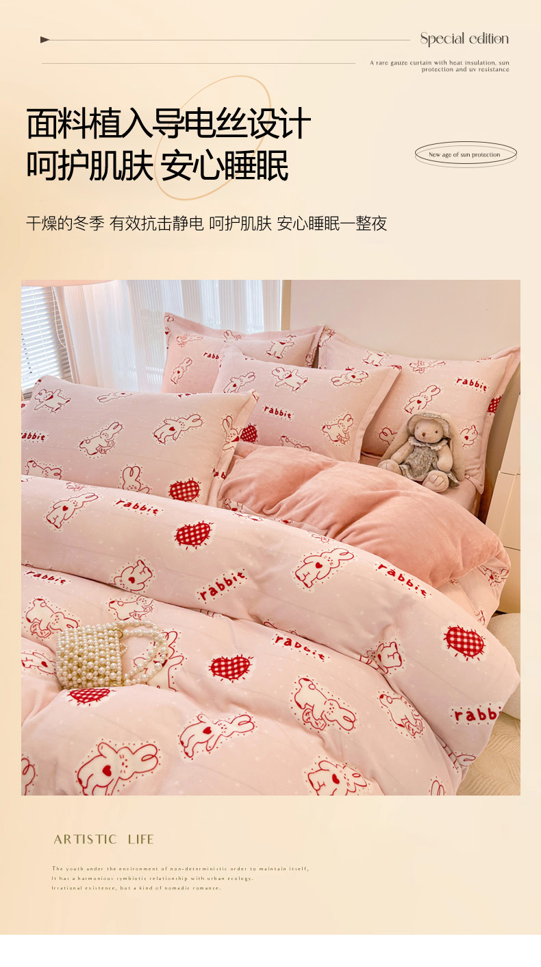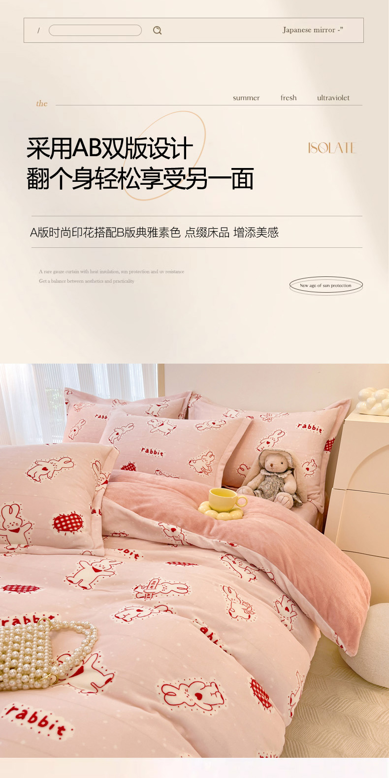 当前位置: 91家纺网 > 商品网购 > 床品套件 > 四件套 > 牛奶绒四件套 > 寐居家纺 2023新款小清新牛奶绒印花四件套 撒娇小兔