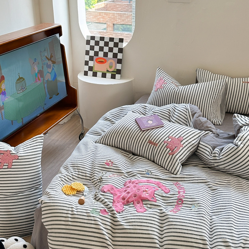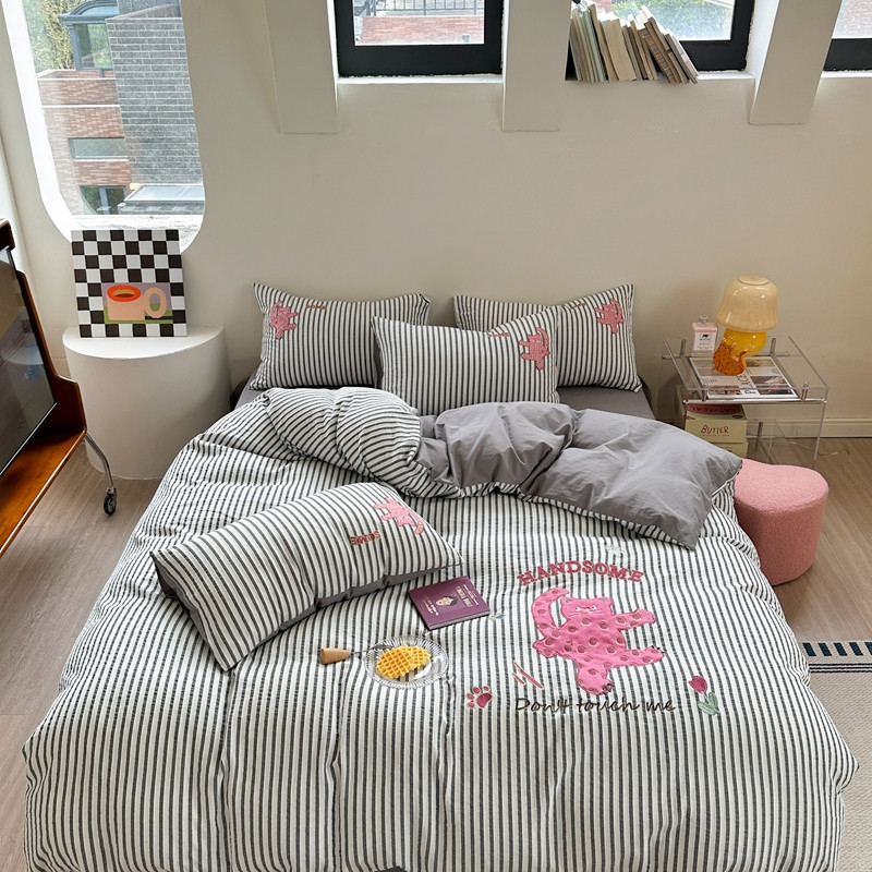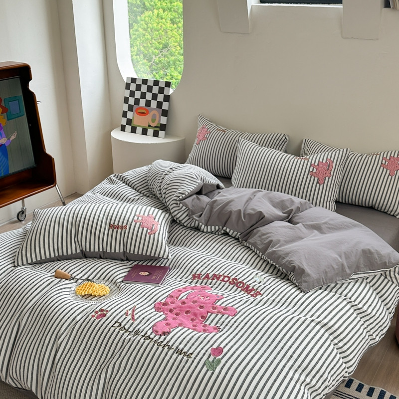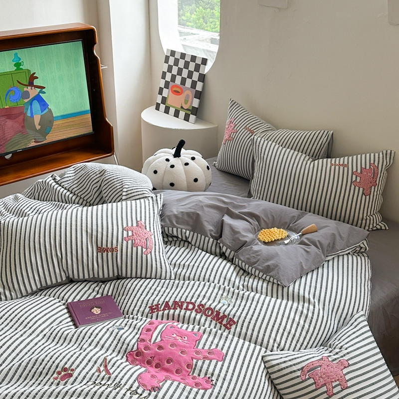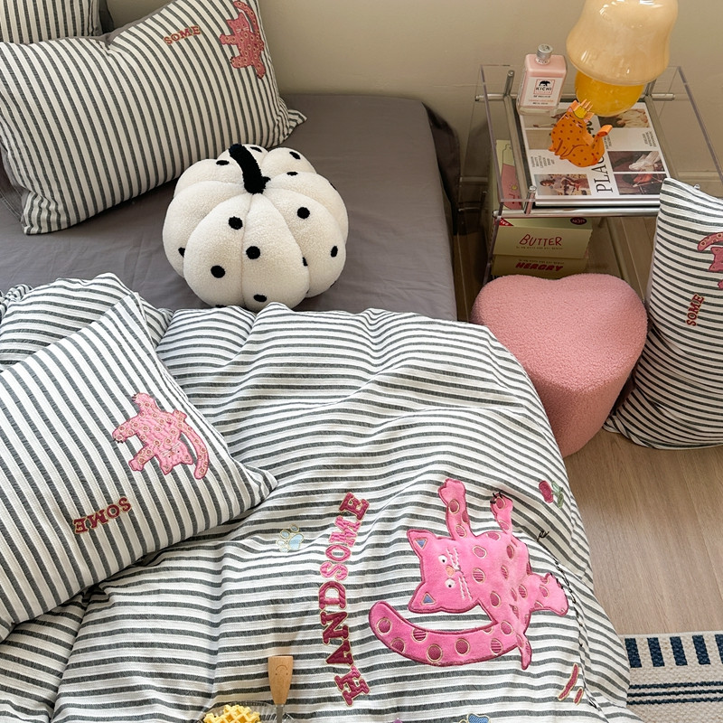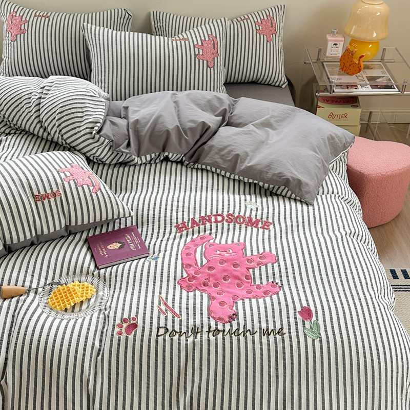 柚子YOUTH 2023新款全棉水洗棉提花刺绣四件套猫星人