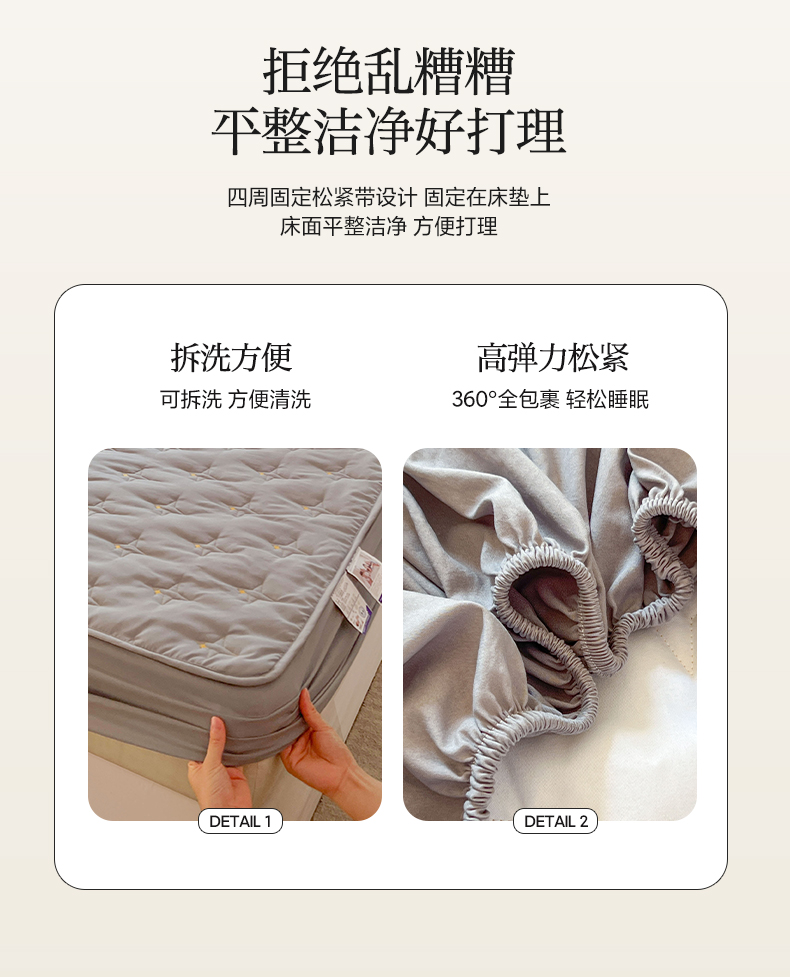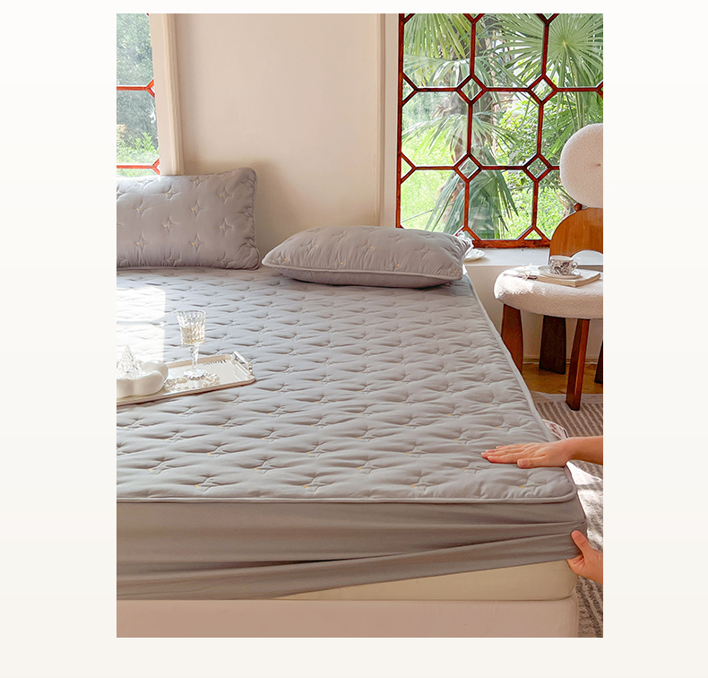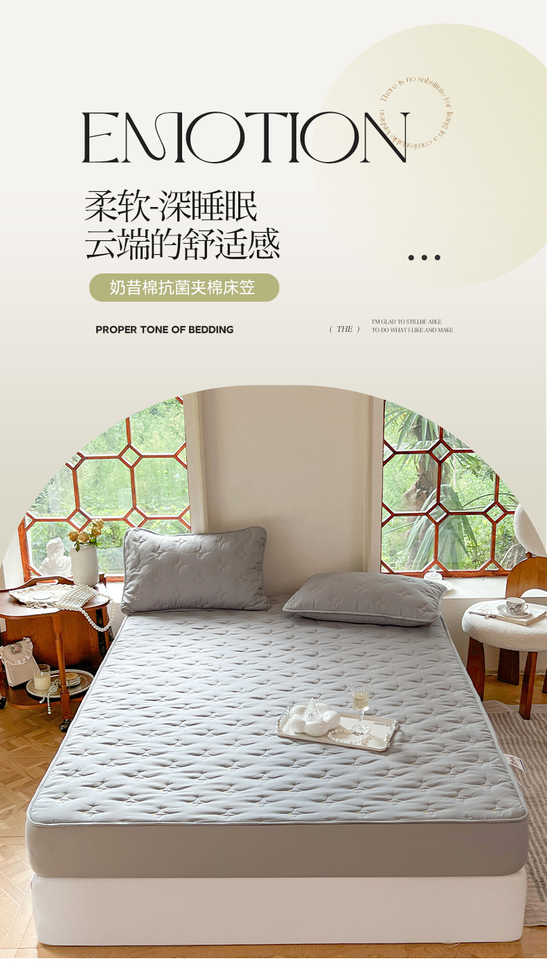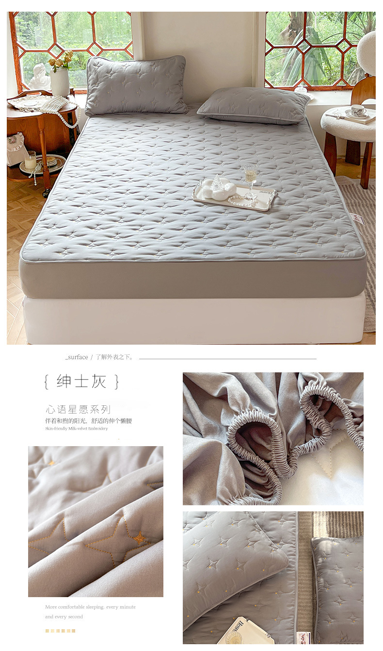 尊康家纺(原磊科) 2024新款奶昔棉抗菌夹棉床笠-心语星愿 绅士灰
