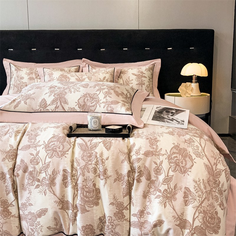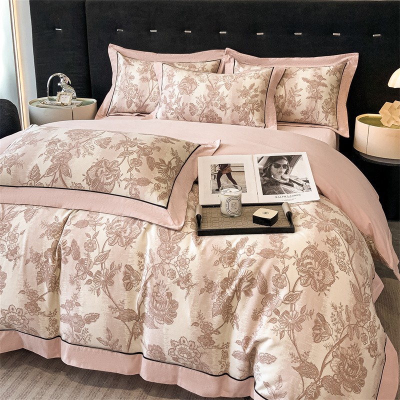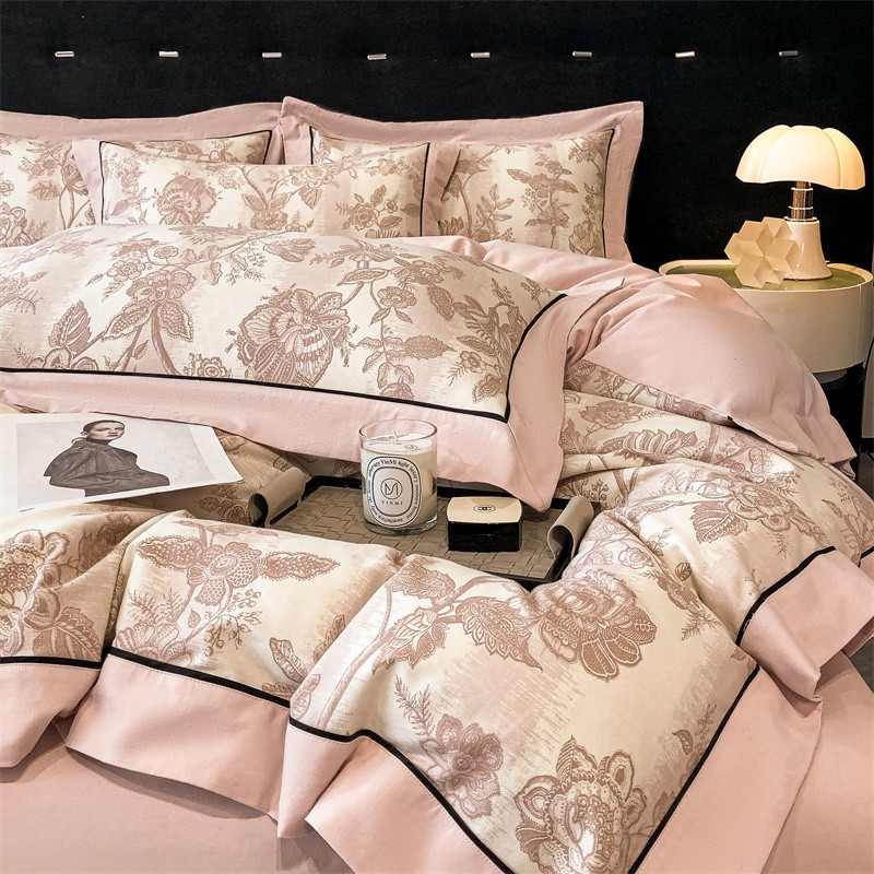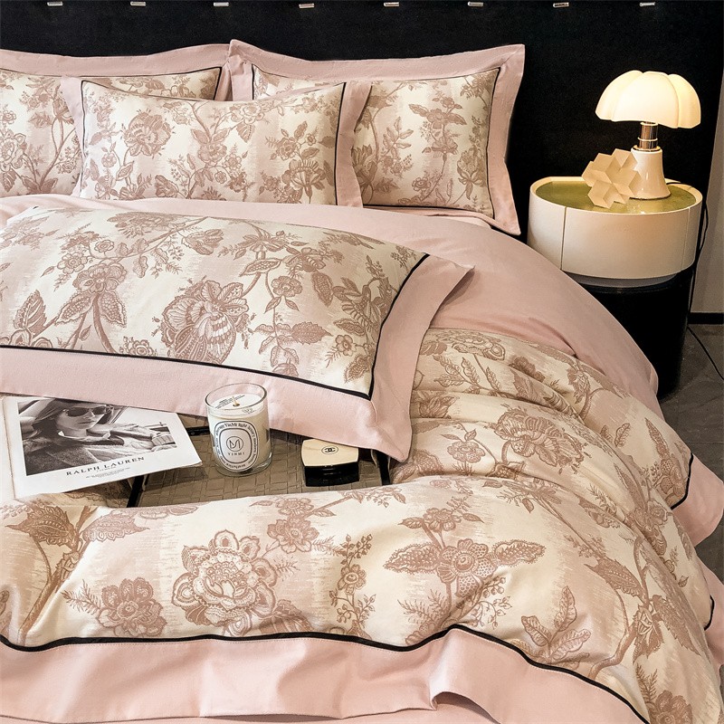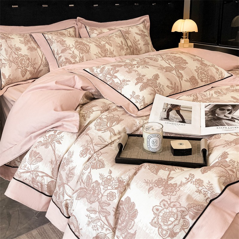 (总)博纳家纺 2025新款镂空大宽边拼角高级简奢款亲肤棉四件套-山水提花,繁星蓝,粉玉,高级灰,香槟,象牙白