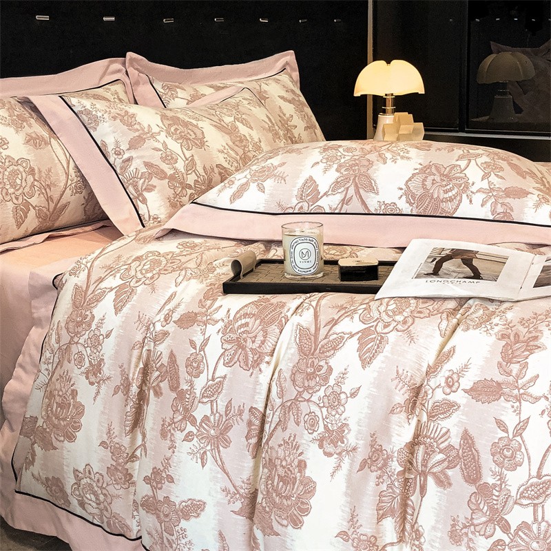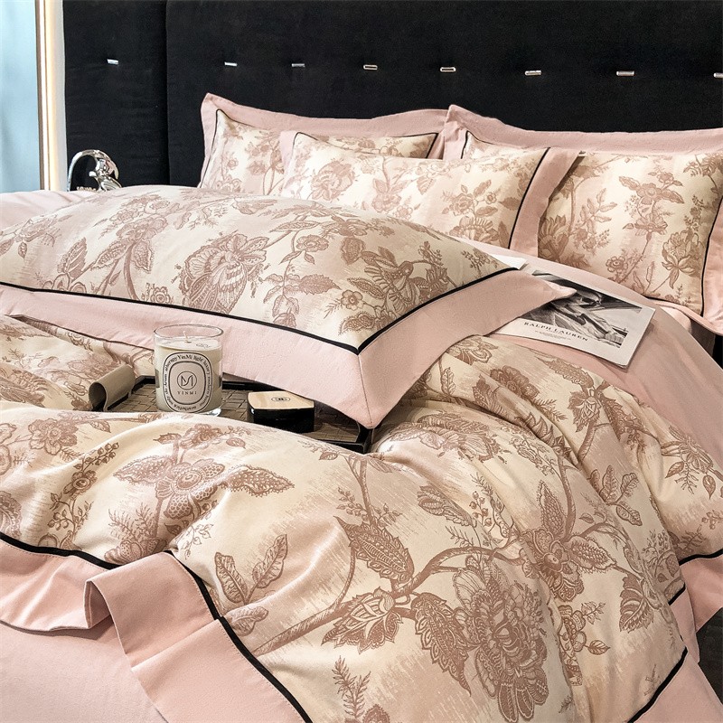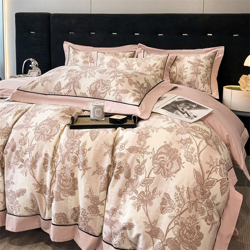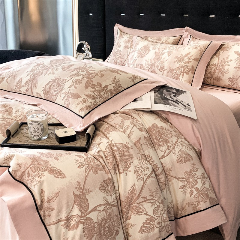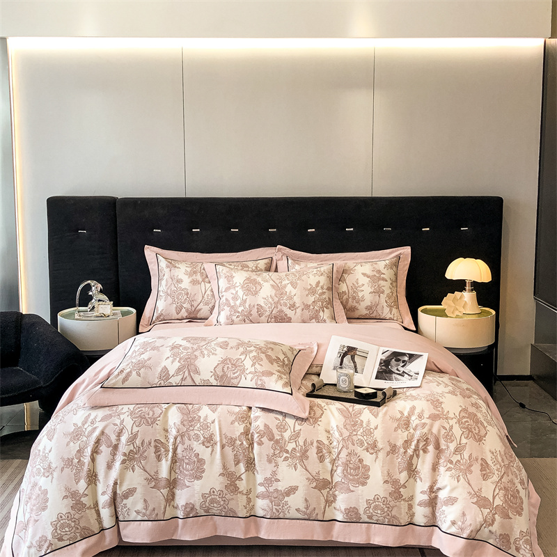 (总)博纳家纺 2025新款镂空大宽边拼角高级简奢款亲肤棉四件套-山水提花,繁星蓝,粉玉,高级灰,香槟,象牙白