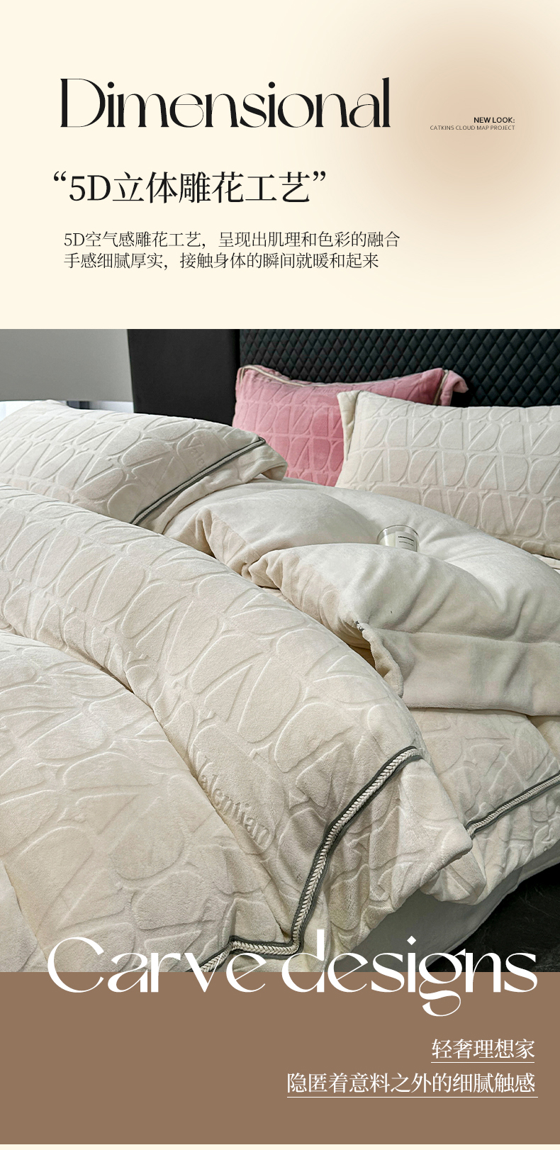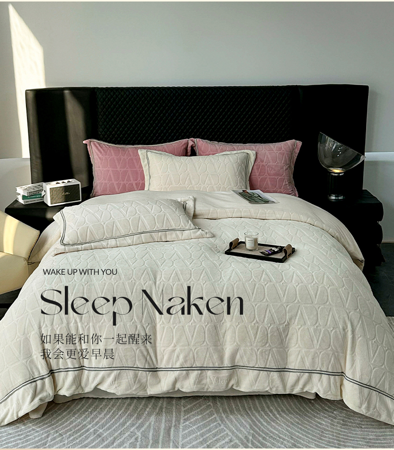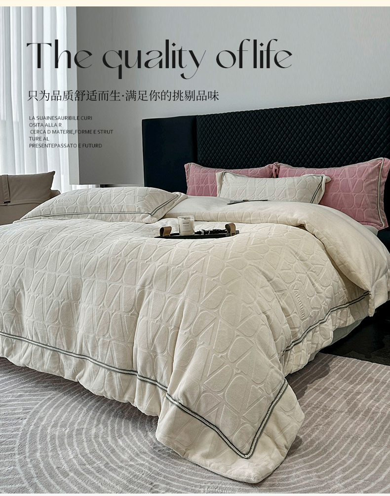 商品名称:2024新款雕花高密牛奶绒四件套-薇卡 薇卡-云朵白